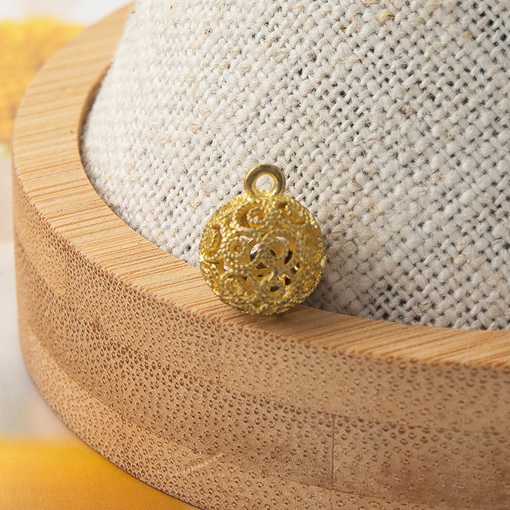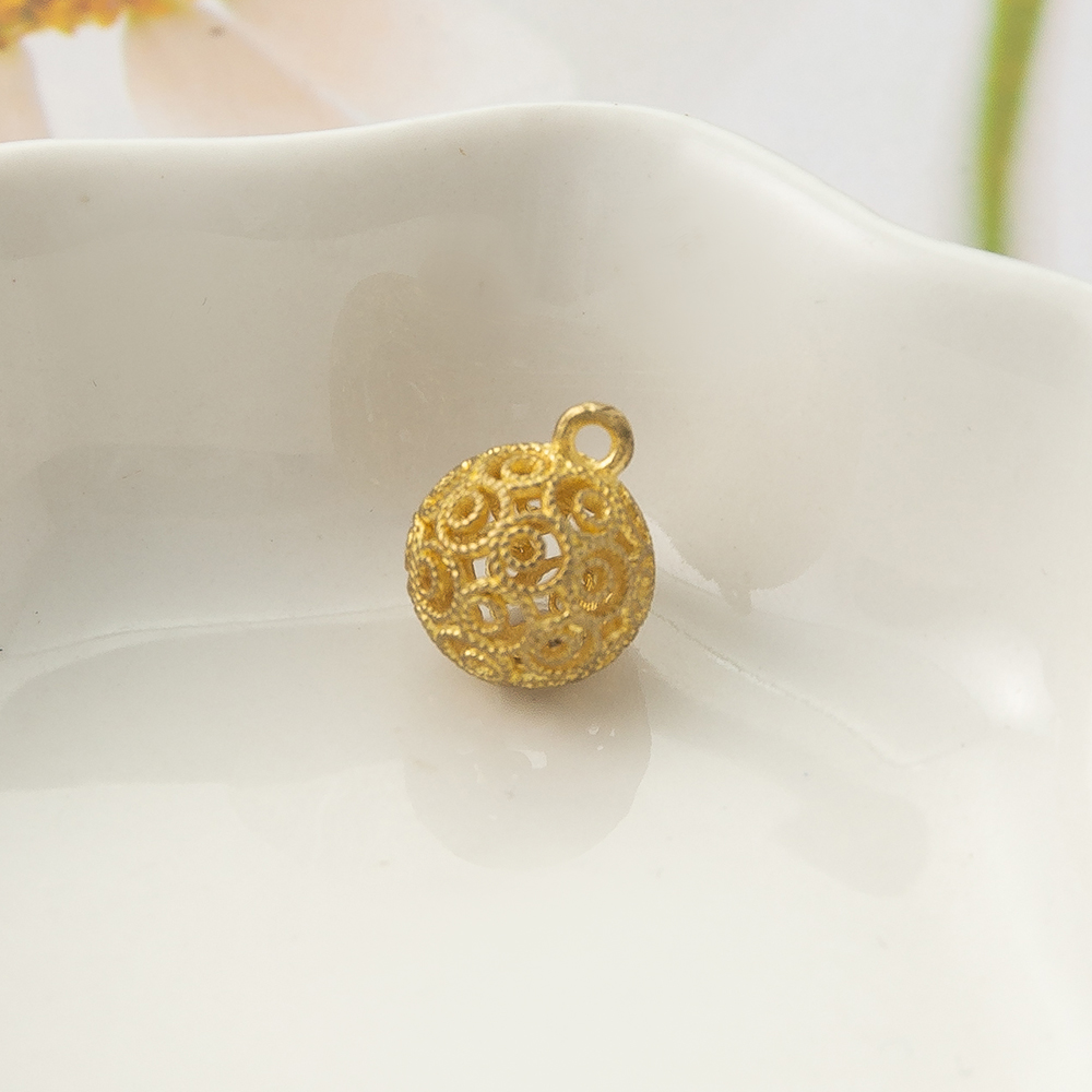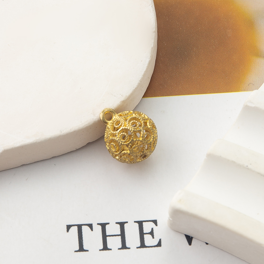 Hollow Brass Pendants, Round, plated, DIY, golden, 9.85x9.85x11.9mm, Sold By PC