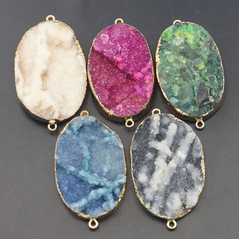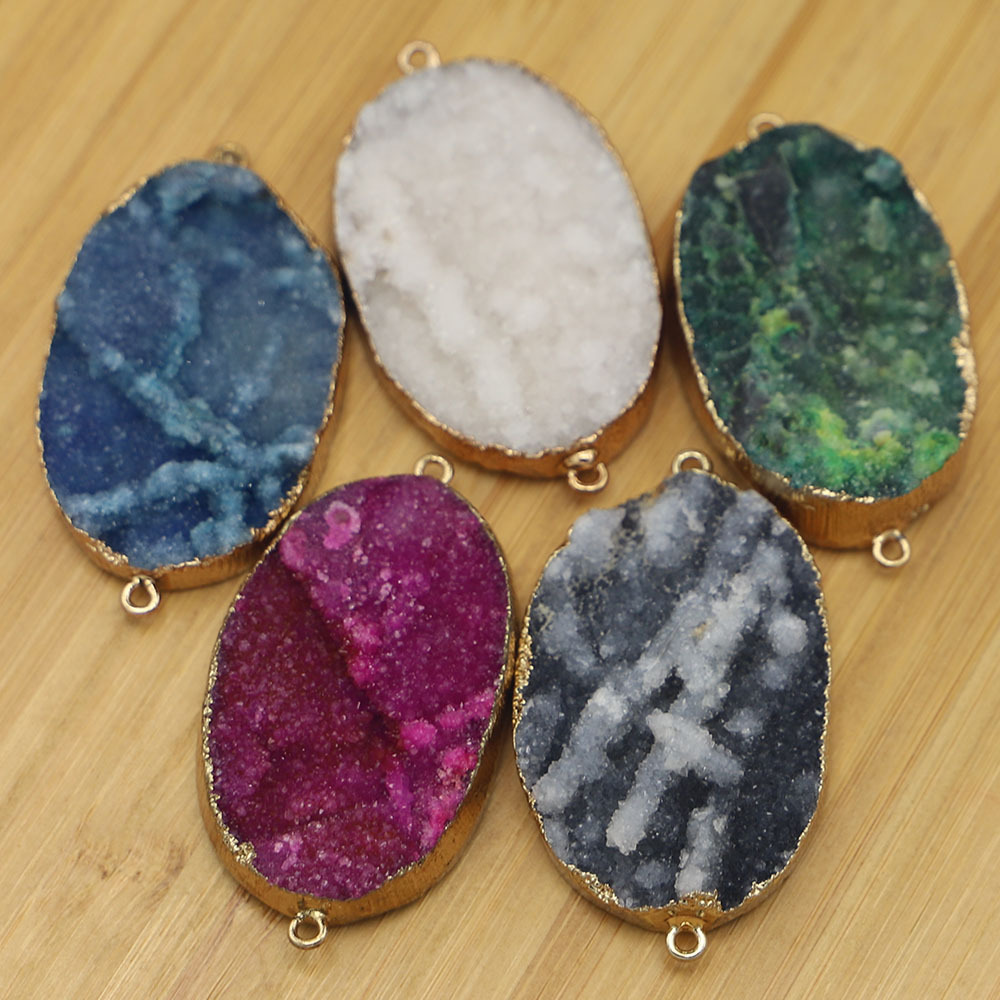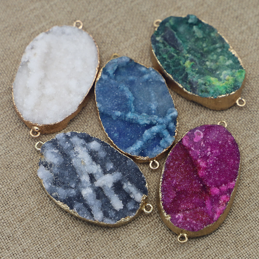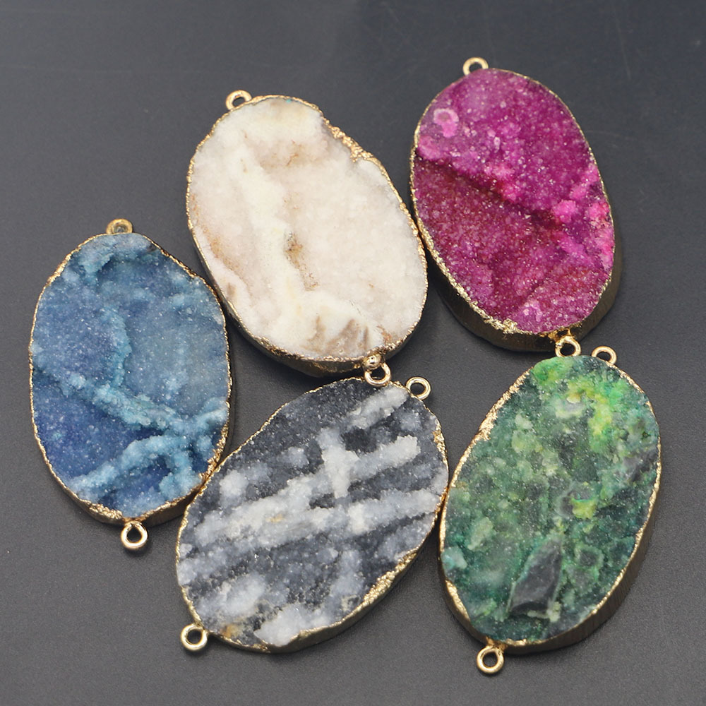 Ice Quartz Agate Connector, with Brass, druzy style & 1/1 loop, mixed colors, 28mm Approx 2mm