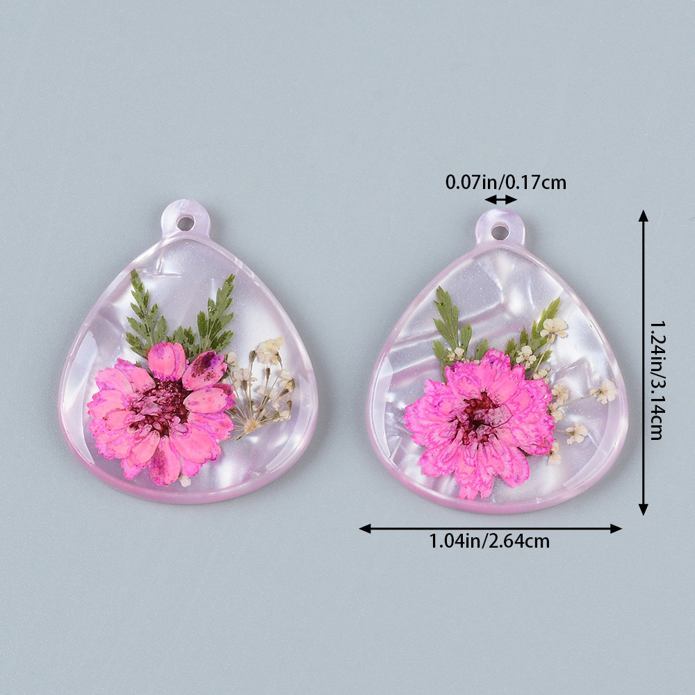 Imitation Amber Resin Pendants, with Dried Flower, DIY, more colors for choice, 10PCs/Bag, Sold By Bag