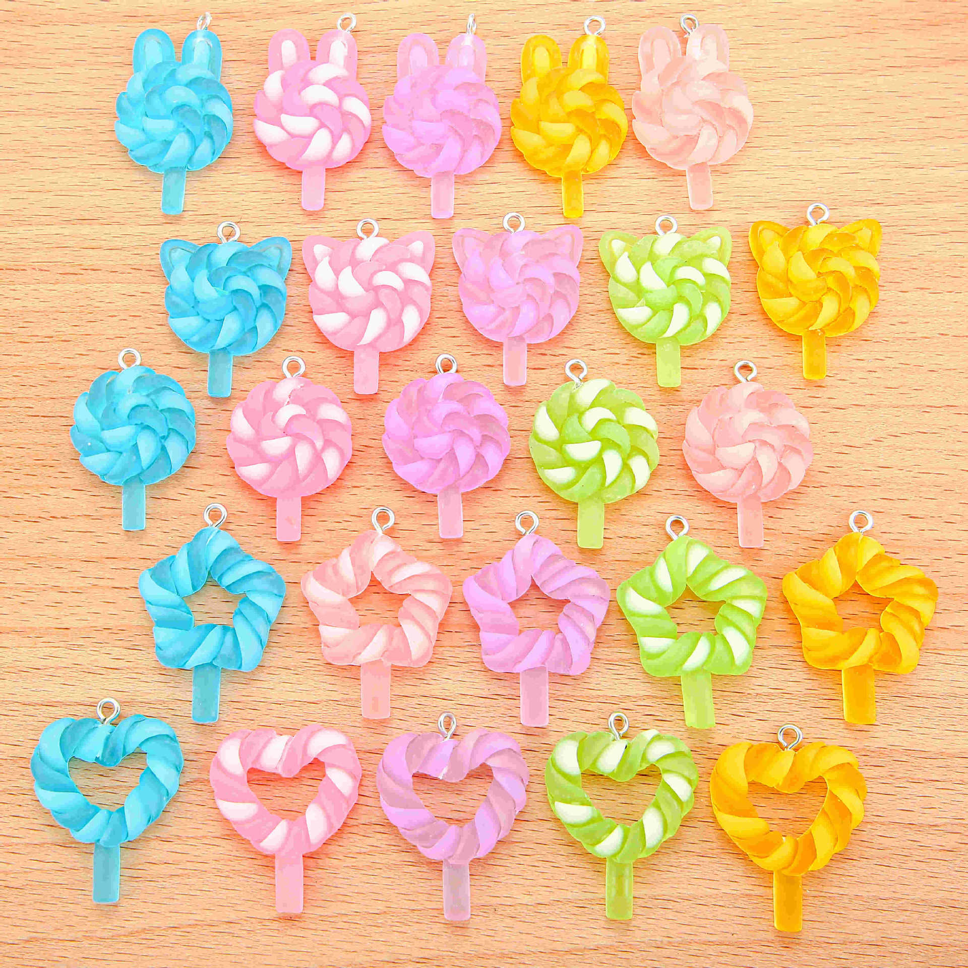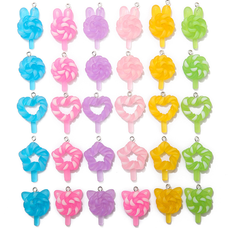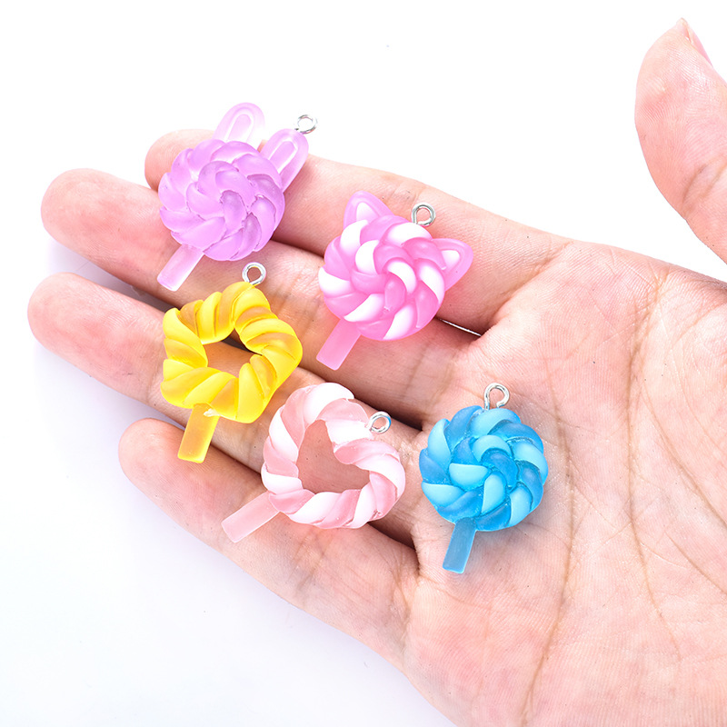 Imitation Food Resin Pendants, Plastic, with Resin, Lollipop, plated, DIY, more colors for choice, 100PCs/Bag, Sold By Bag