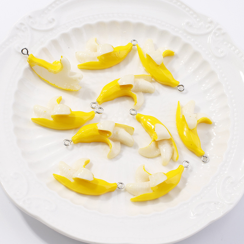 Imitation Fruit Resin Pendant, Banana, DIY, 19x30mm, Sold By PC