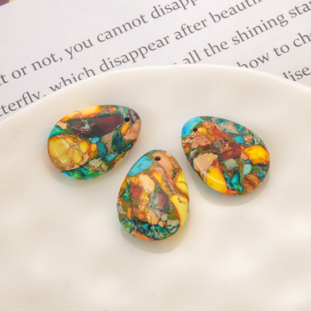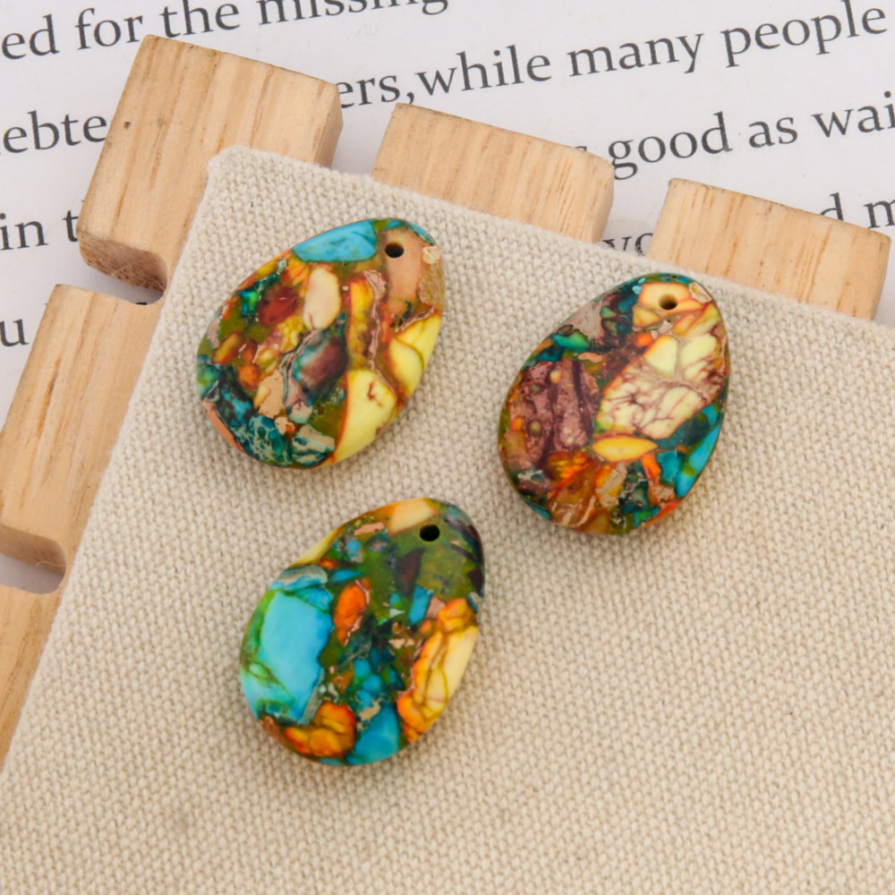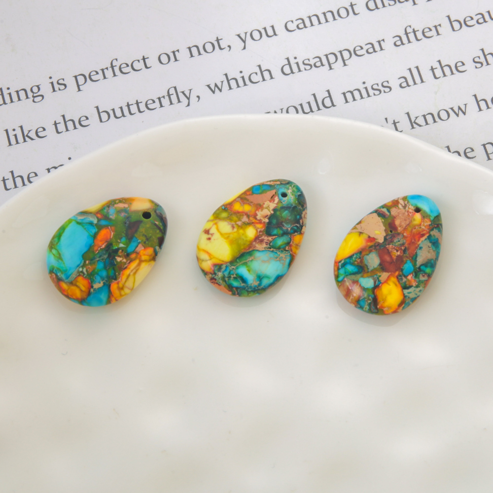 Impression Jasper Pendants, Teardrop, DIY, mixed colors, 18x25mm, Sold By PC