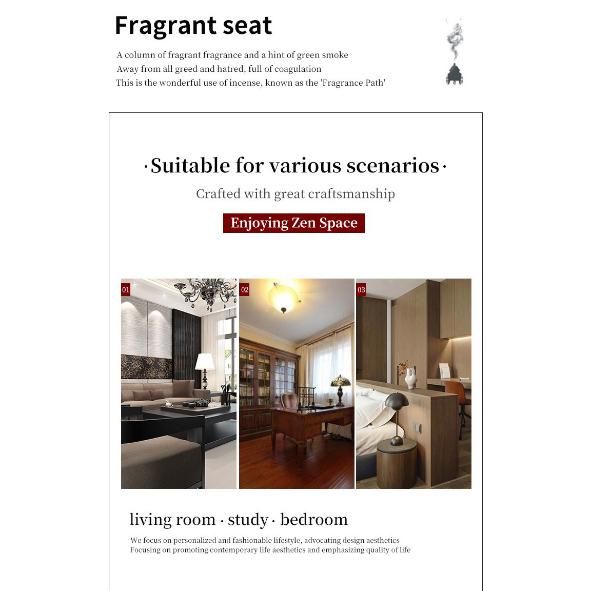 Incense Smoke Flow Backflow Holder Ceramic Incense Burner, Porcelain, for home and office