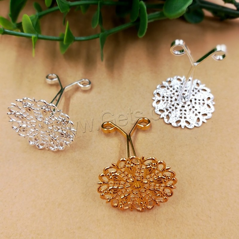 Iron Hair Clip Findings, with Brass, Flower, plated, more colors for choice, lead & cadmium free, 20x30mm, 100PCs/Bag, Sold By Bag