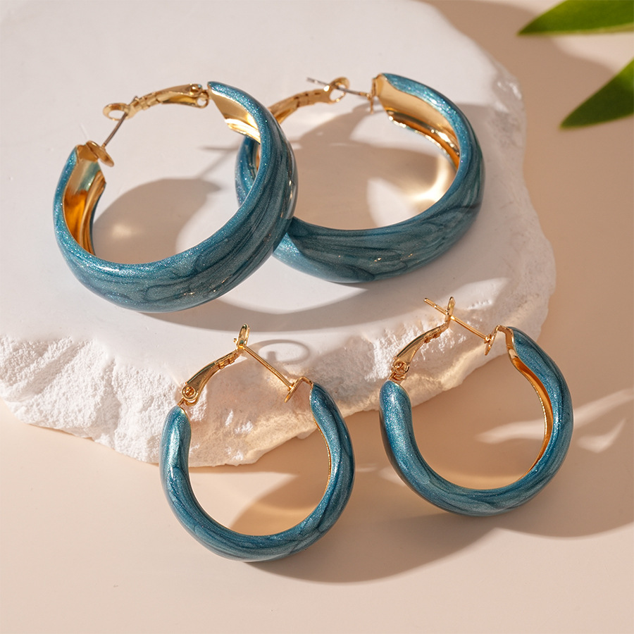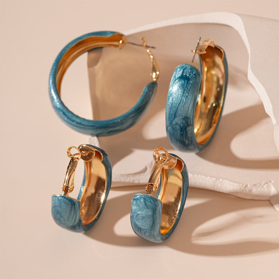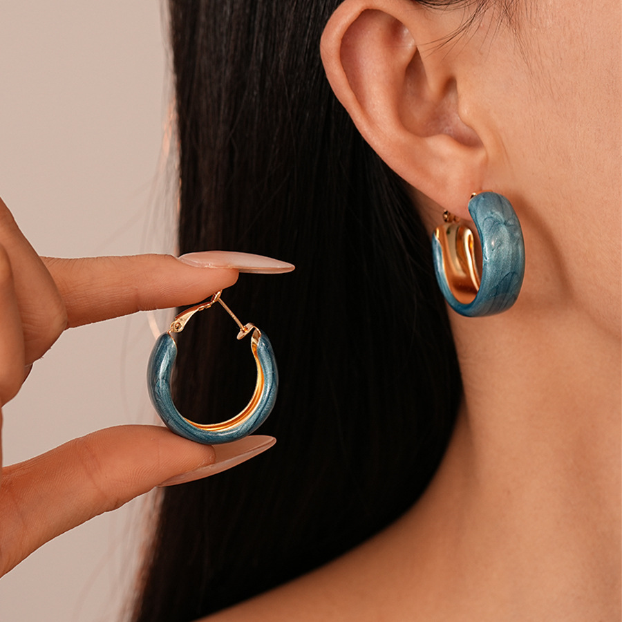 Iron Hoop Earring, gold color plated, different size for choice & different styles for choice & for woman & enamel, blue, Sold By Pair