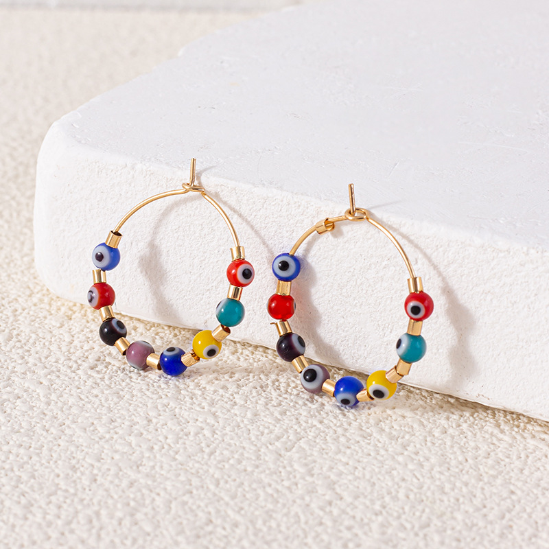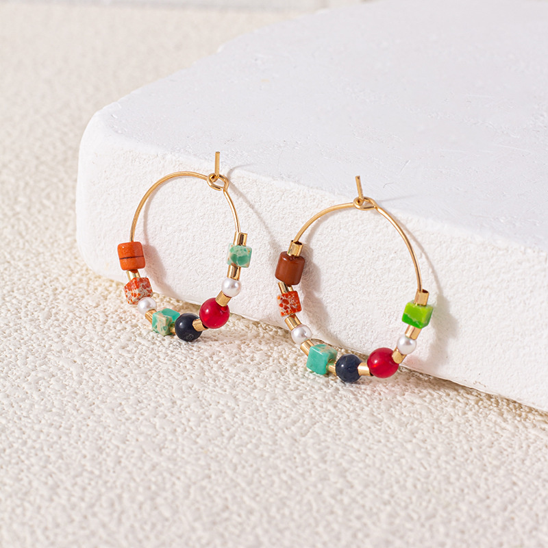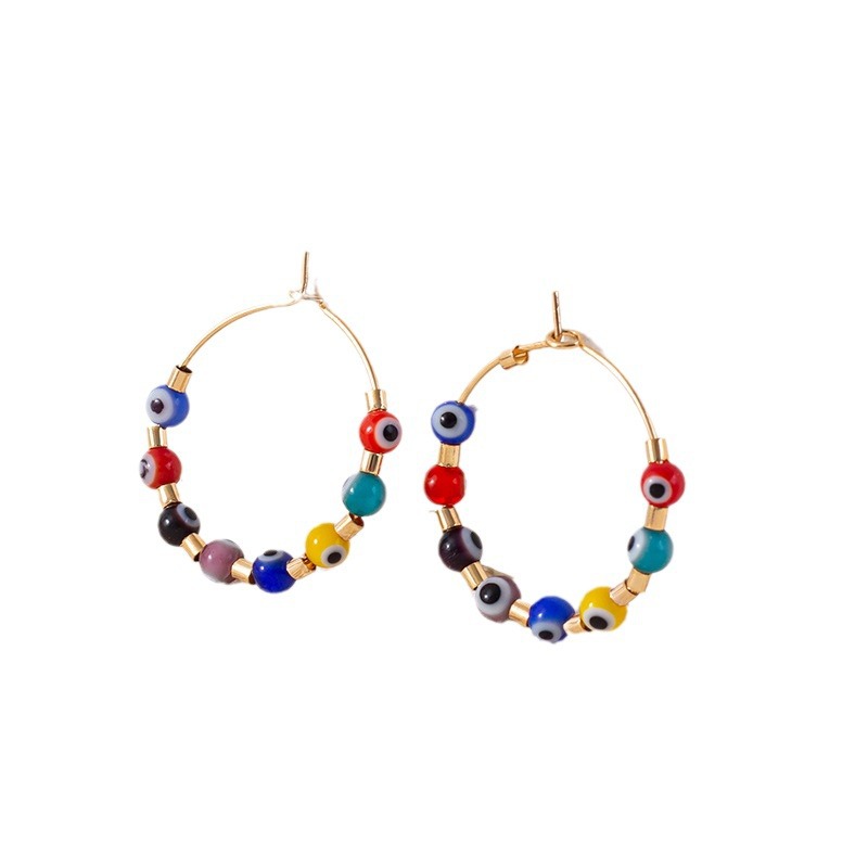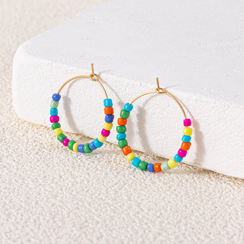 Iron Hoop Earring, with Glass Seed Beads, gold color plated, fashion jewelry & for woman, more colors for choice, 23x23mm, Sold By PC
