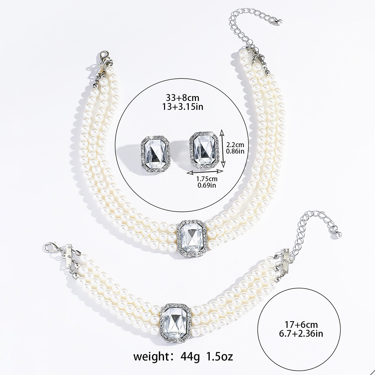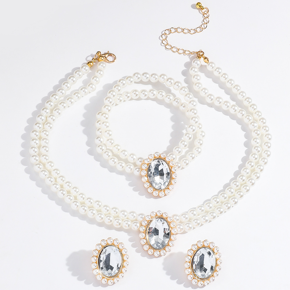 Jewelry Gift Sets, ABS Plastic Pearl, with Glass, plated, three pieces & fashion jewelry & with rhinestone, more colors for choice, Sold By Set