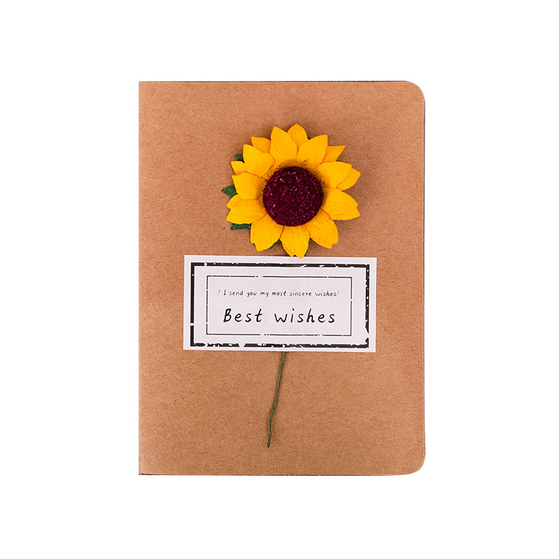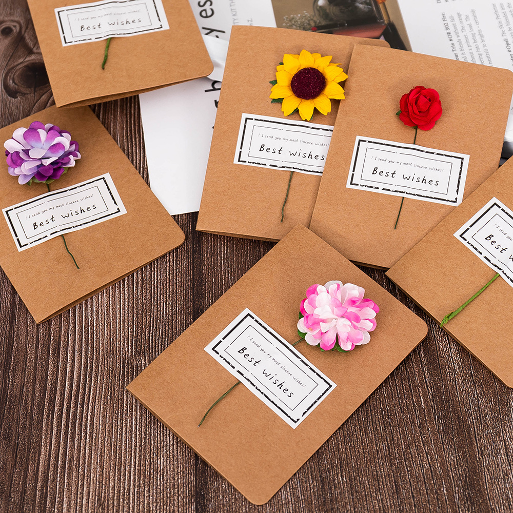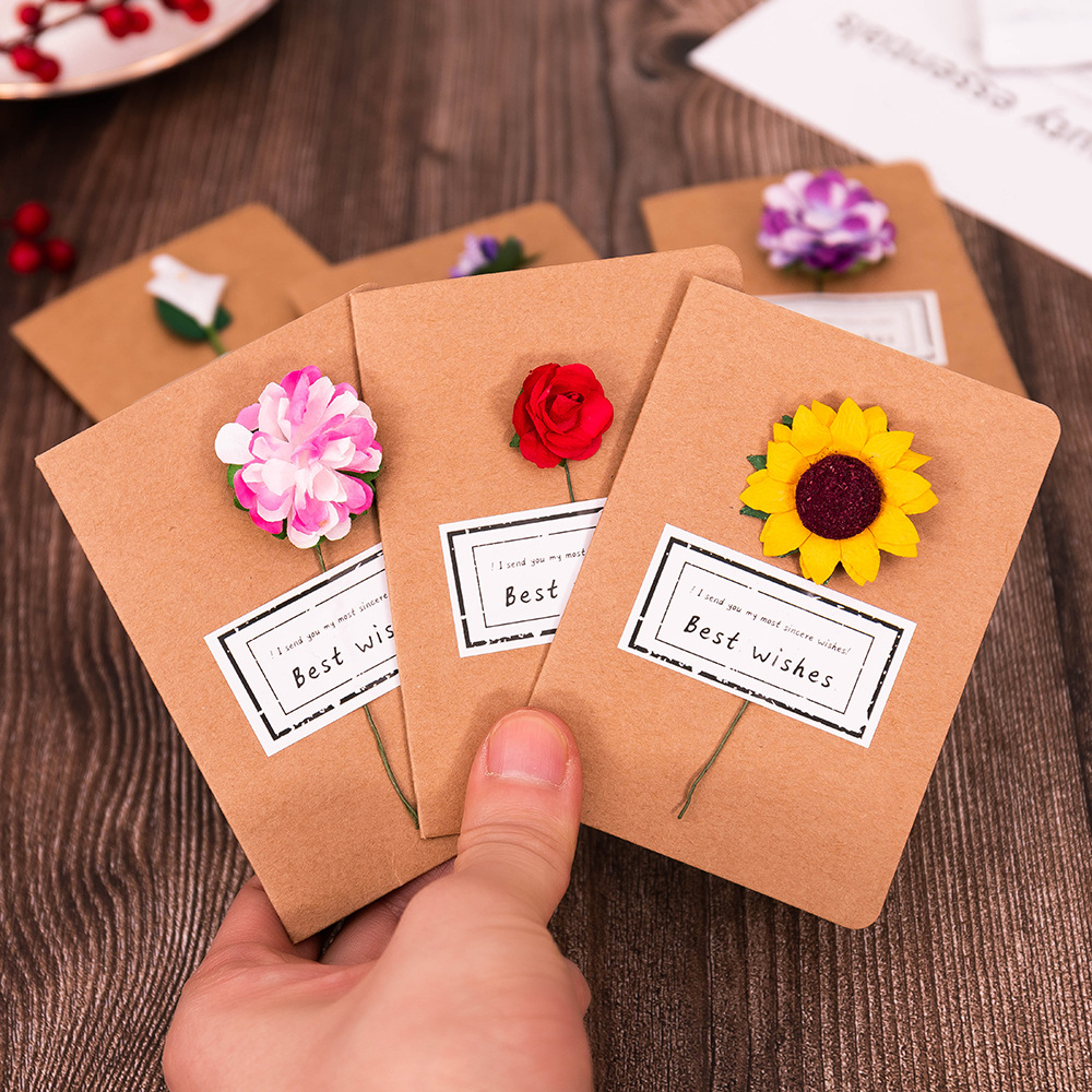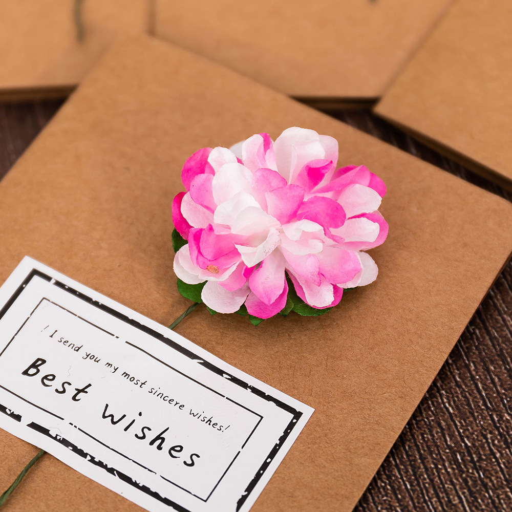 Kraft Greeting Card, with Dried Flower, printing, with flower pattern, more colors for choice, 105x75mm, Sold By PC