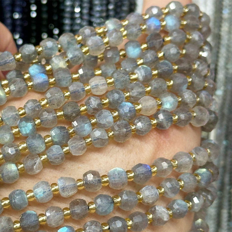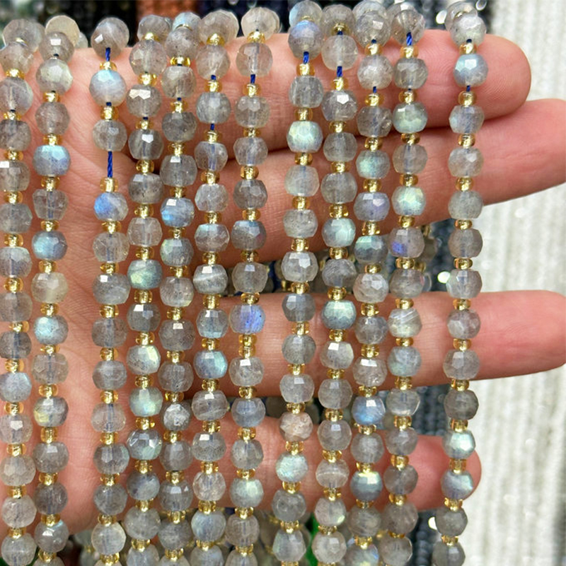 Labradorite Beads, Lantern, polished, DIY & faceted, 4x6mm, Length:Approx 38 cm, Sold By Strand
