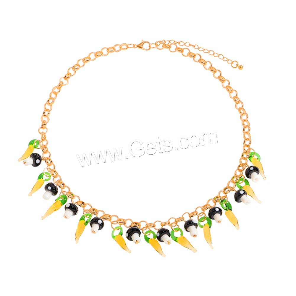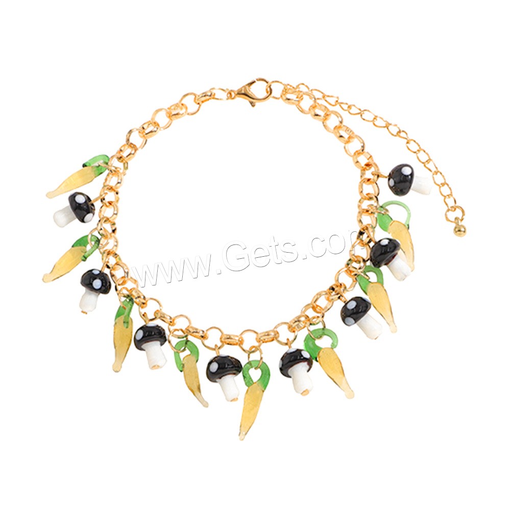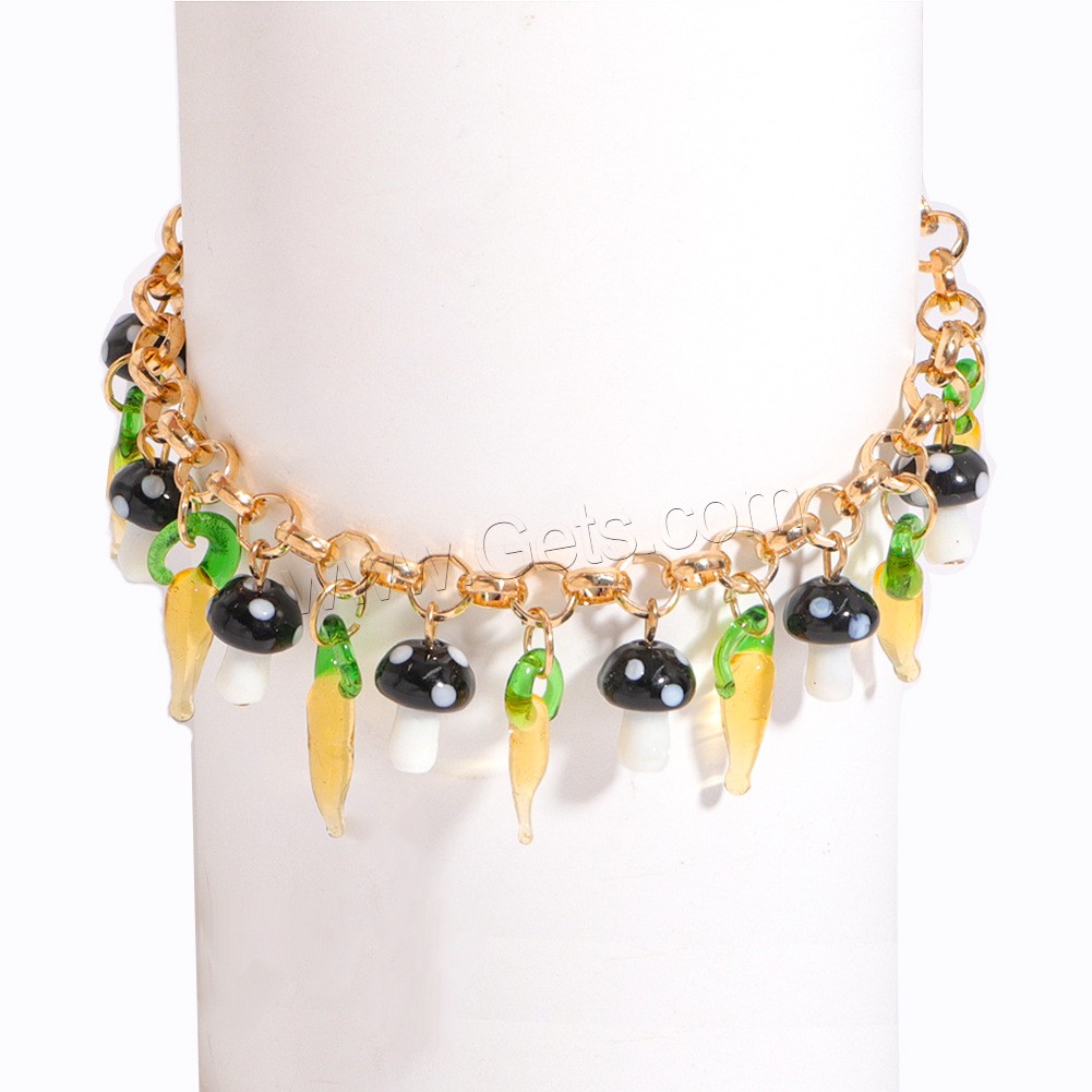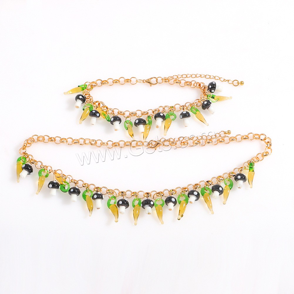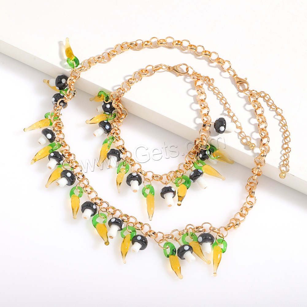 Lampwork Jewelry Sets, Zinc Alloy, bracelet & necklace, with Lampwork, gold color plated, 2 pieces & fashion jewelry & for woman, multi-colored, Sold By Set