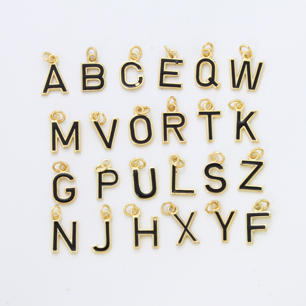 Letter Brass Pendants, Alphabet Letter, plated, DIY & enamel, black, 11.6x6.5x1.2mm, Sold By PC