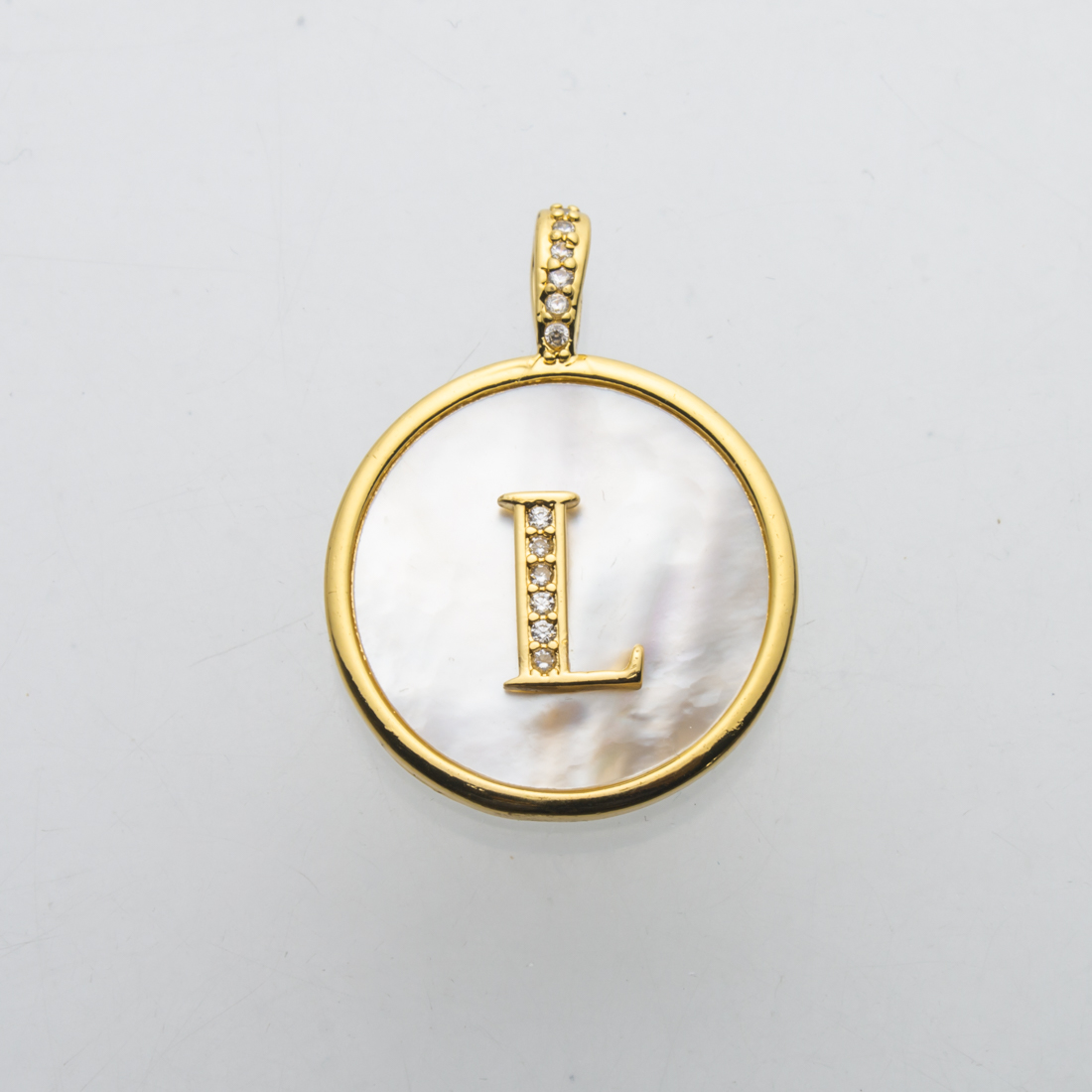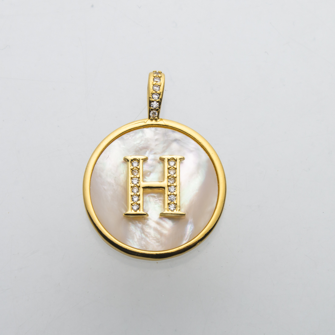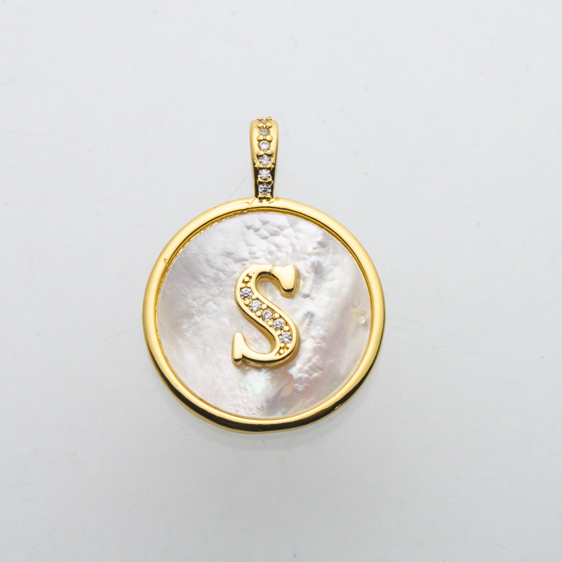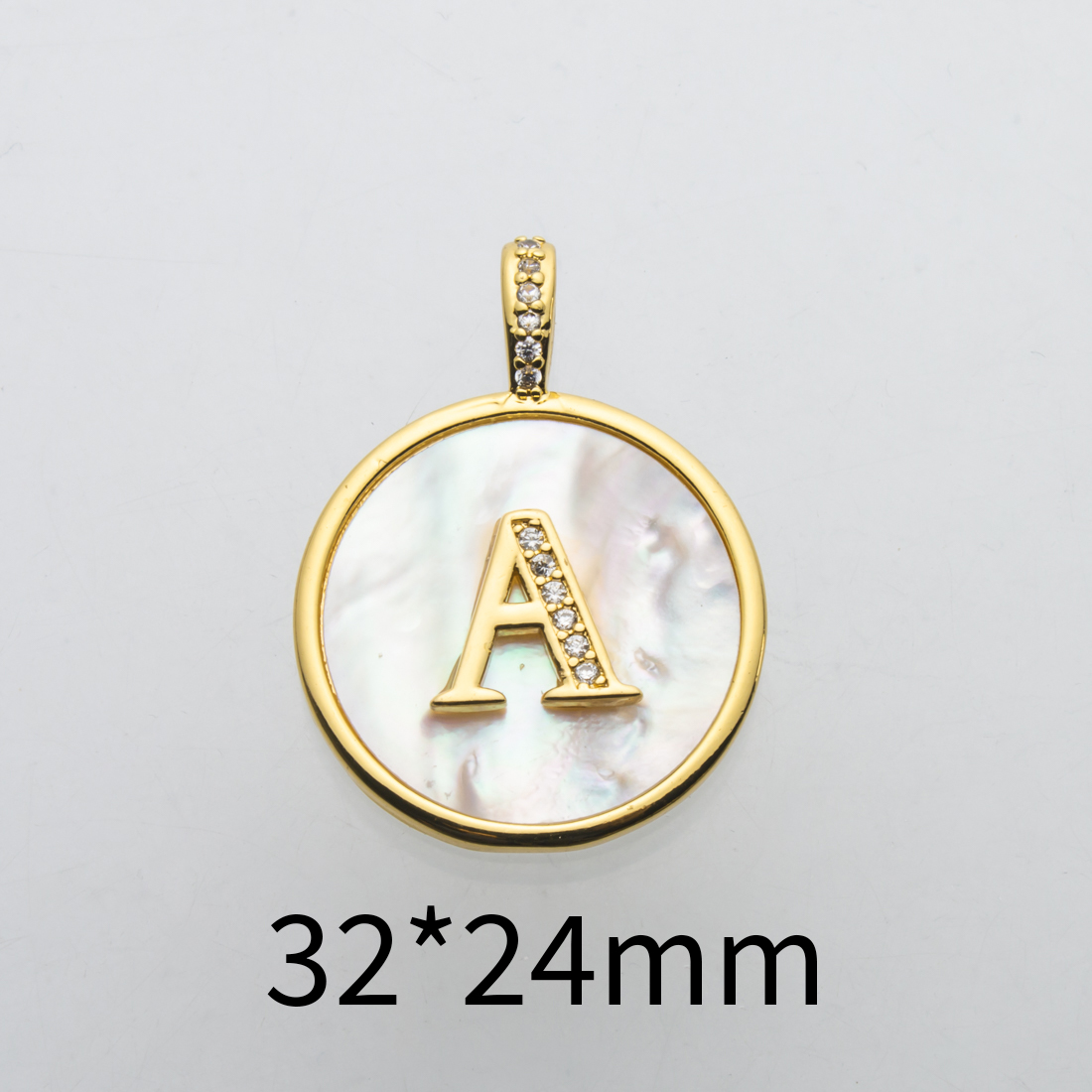 Letter Brass Pendants, with Shell, Round, gold color plated, DIY & different designs for choice, 32x24x6mm, Sold By PC