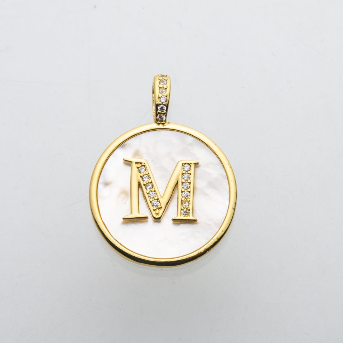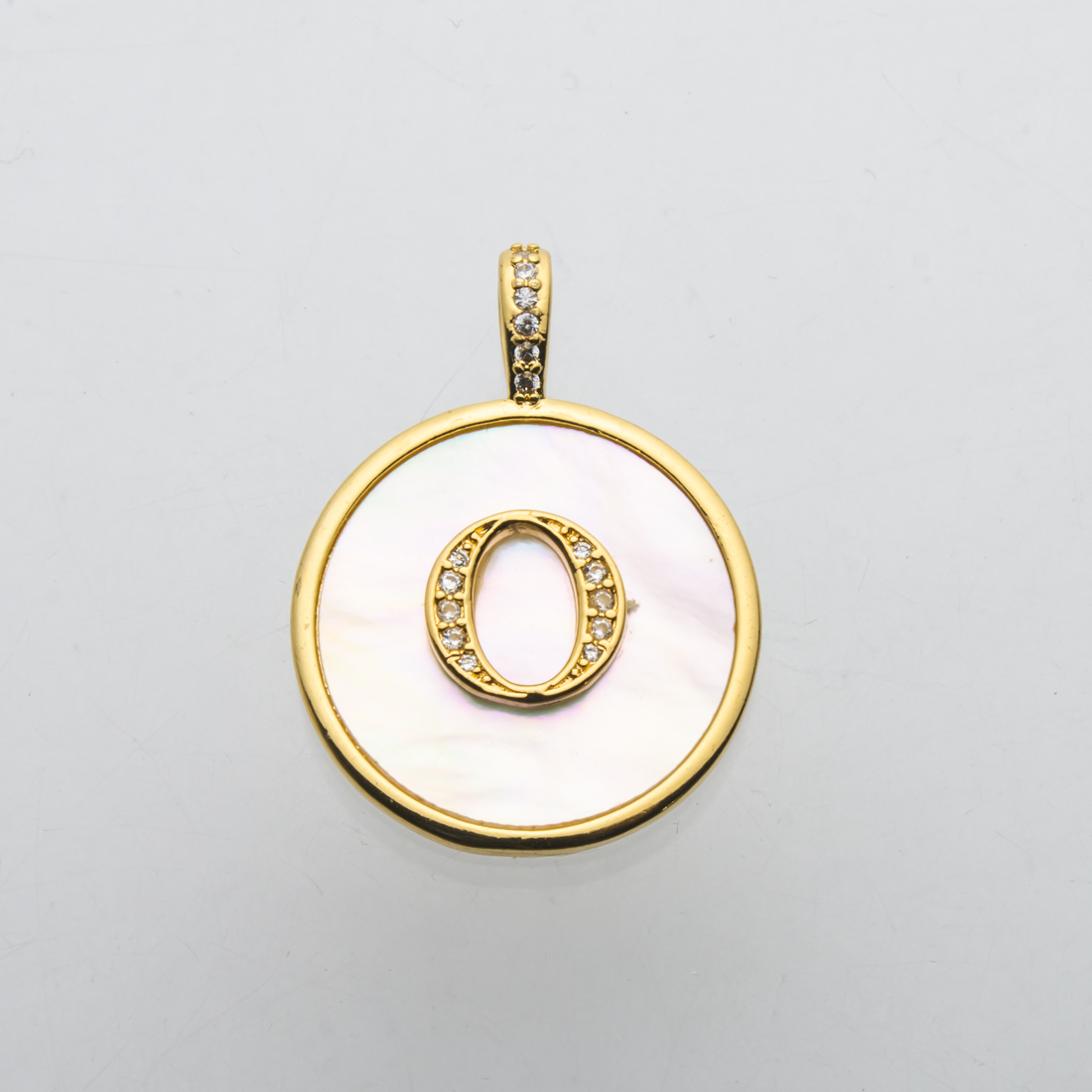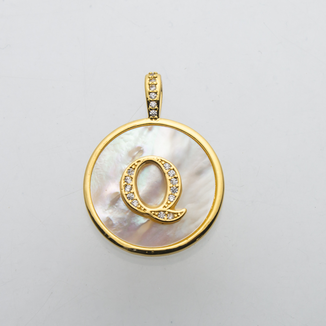 Letter Brass Pendants, with Shell, Round, gold color plated, DIY & different designs for choice, 32x24x6mm, Sold By PC