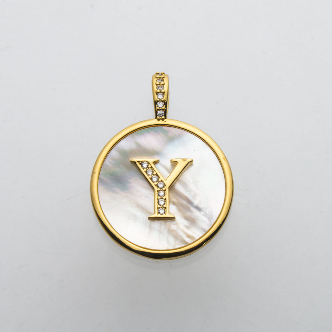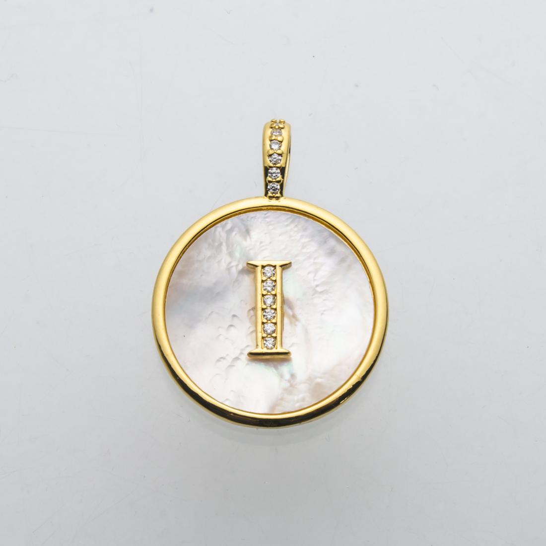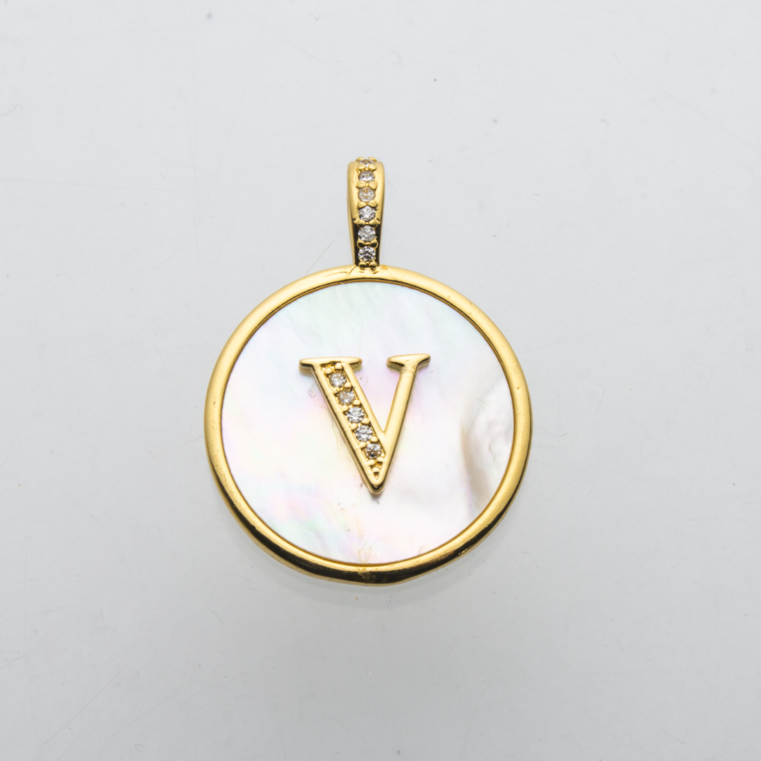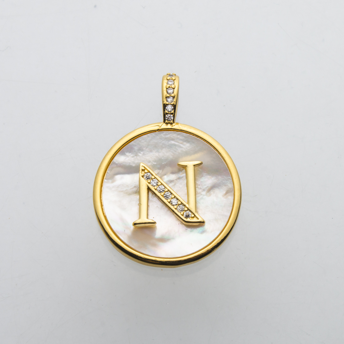 Letter Brass Pendants, with Shell, Round, gold color plated, DIY & different designs for choice, 32x24x6mm, Sold By PC