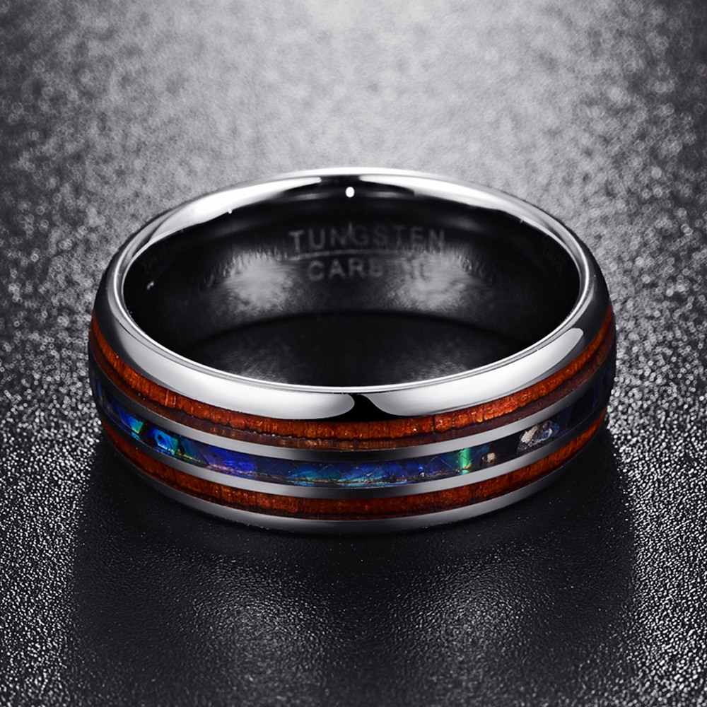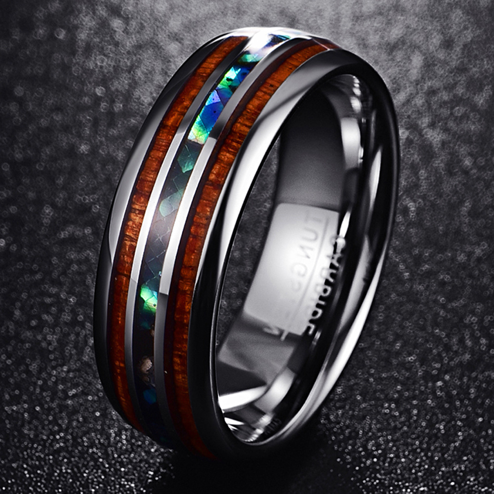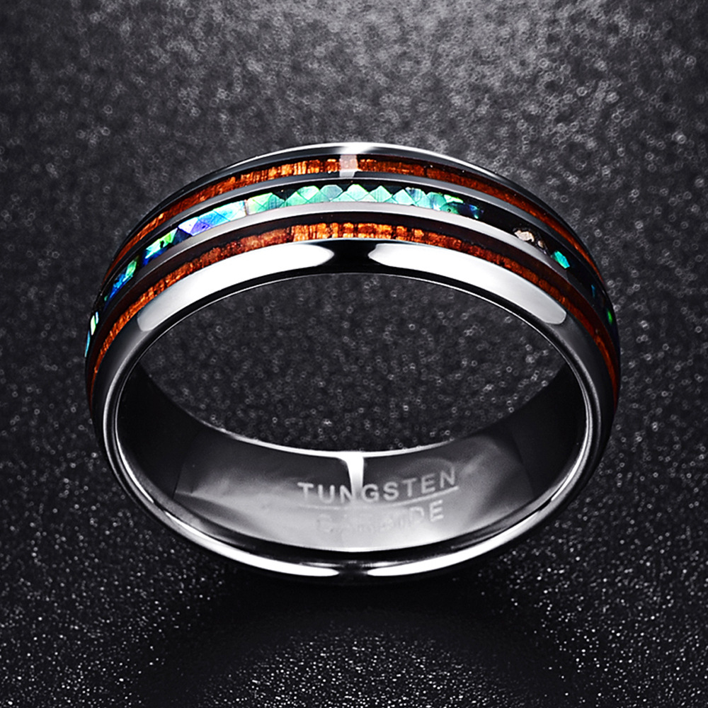 Men Tungsten Steel Ring in Bulk, with Abalone Shell & Wood, plated, fashion jewelry & different size for choice & for man, Sold By PC