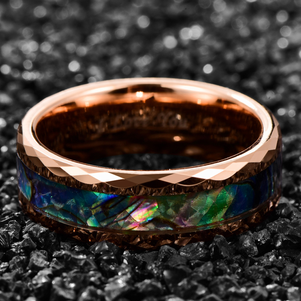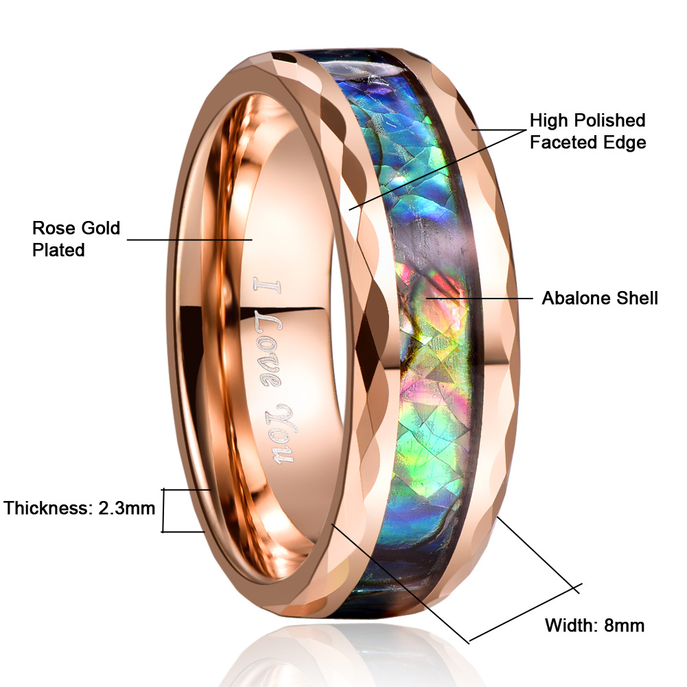 Men Tungsten Steel Ring in Bulk, with Abalone Shell, rose gold color plated, fashion jewelry & different size for choice & for man, Sold By PC