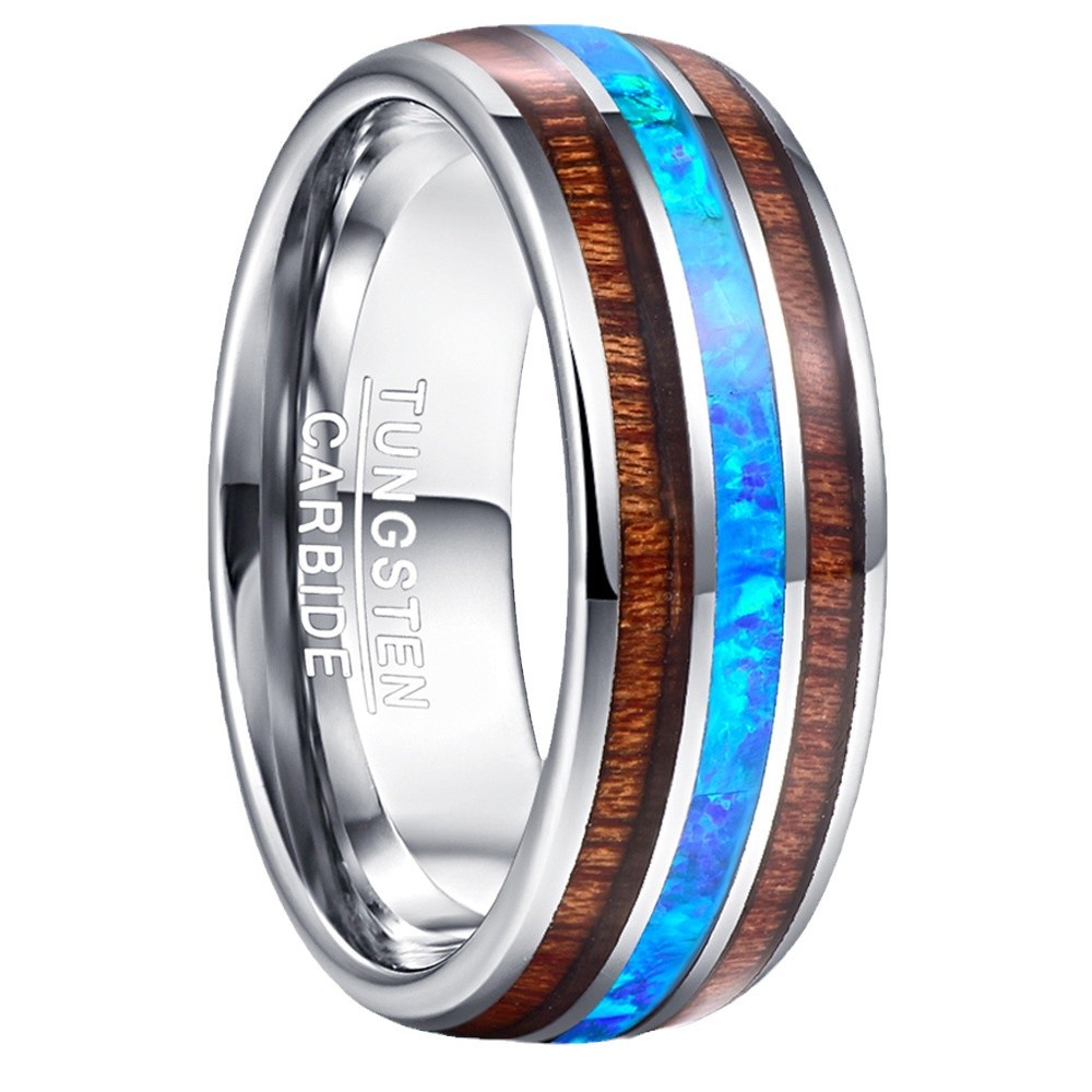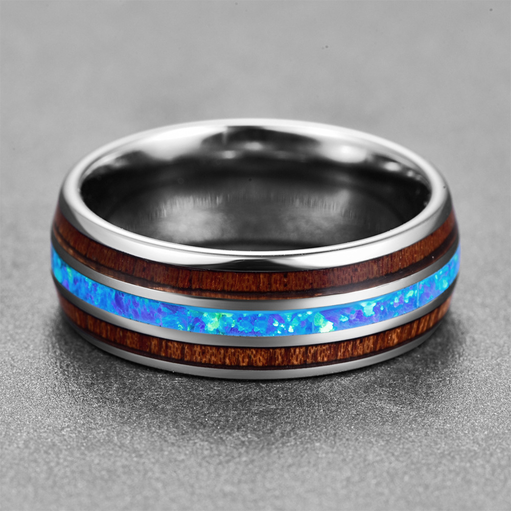 Men Tungsten Steel Ring in Bulk, with Opal & Wood, plated, fashion jewelry & different size for choice & for man, original color, Sold By PC