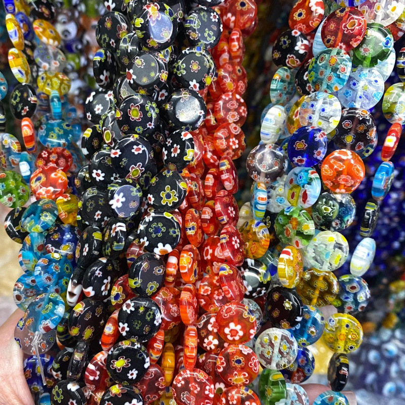 Millefiori Slice Lampwork Beads, Millefiori Lampwork, Flat Round, handmade Approx 1mm Approx 15 Inch, Approx