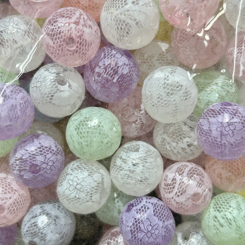 Mixed Acrylic Jewelry Beads, Round, Carved, with flower pattern, mixed colors, 8mm, Approx
