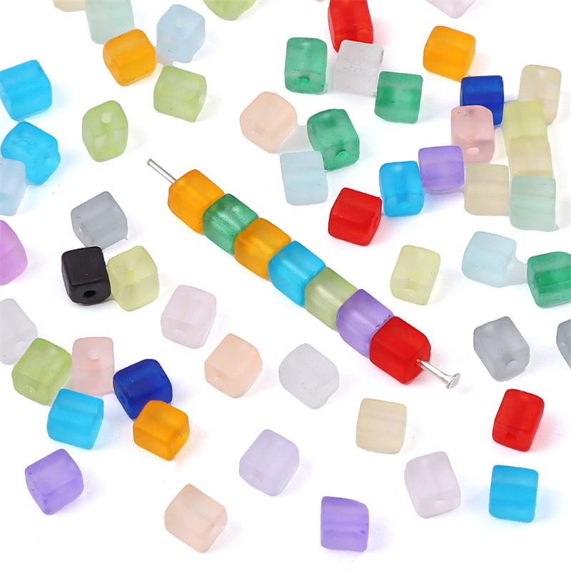 Mixed Glass Bead, Square, DIY & frosted, more colors for choice, 5x5mm, Hole:Approx 1mm, Approx 50PCs/Bag, Sold By Bag