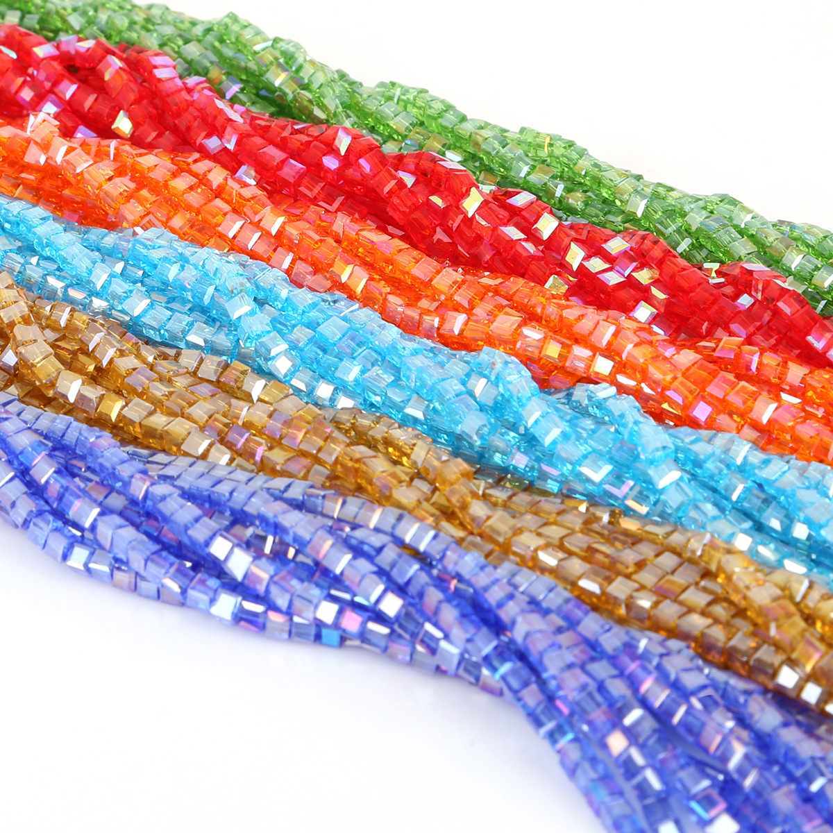 Mixed Glass Bead, Square, DIY & different size for choice, more colors for choice, Sold By Bag