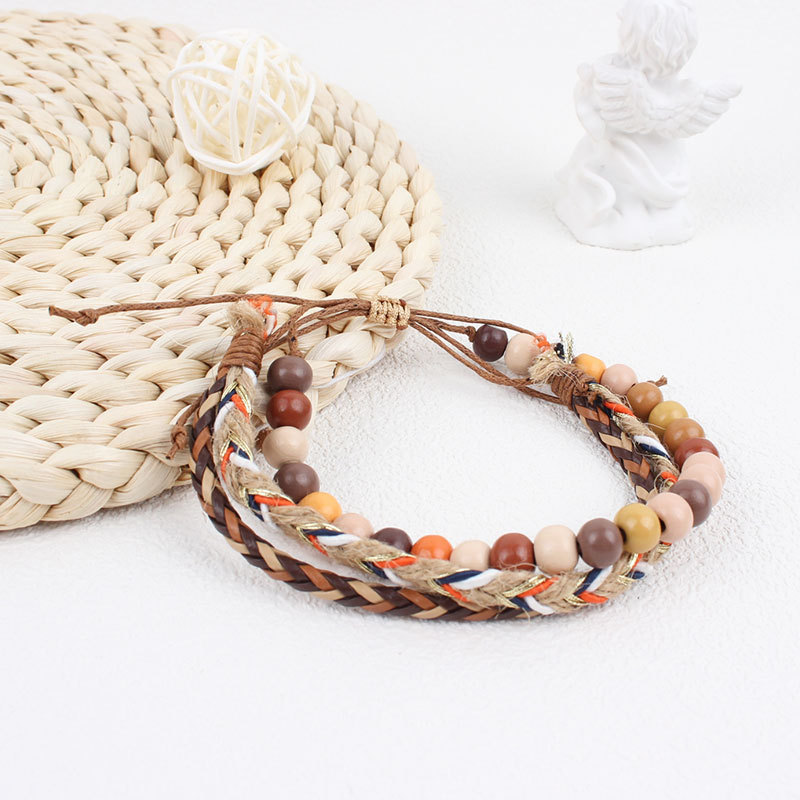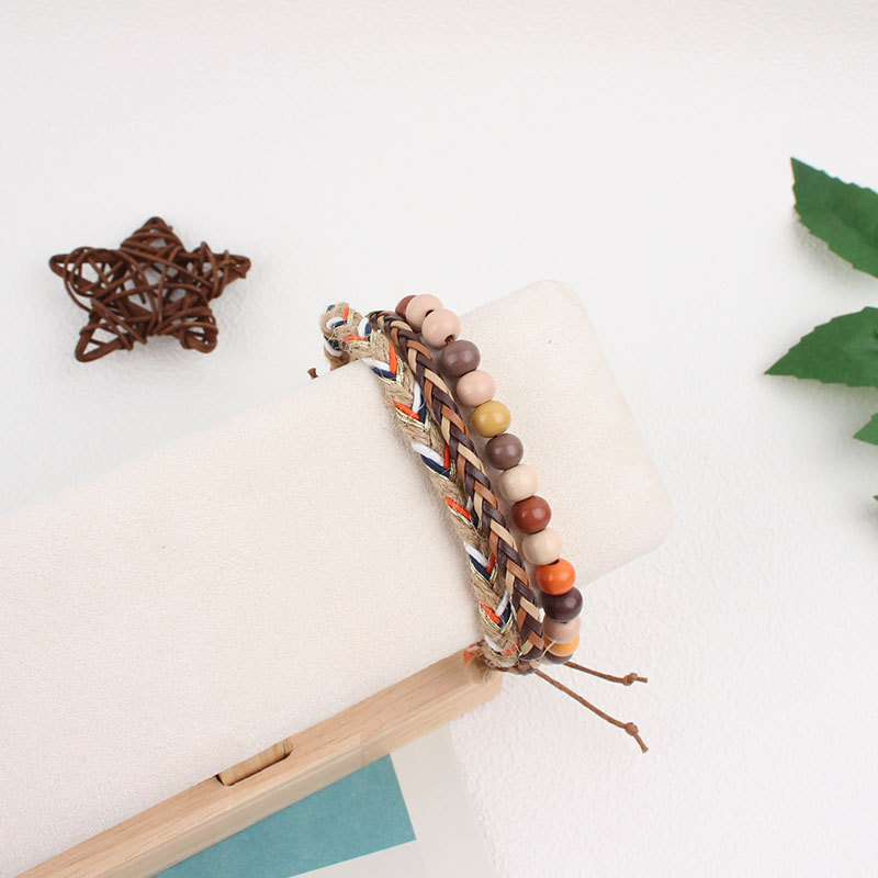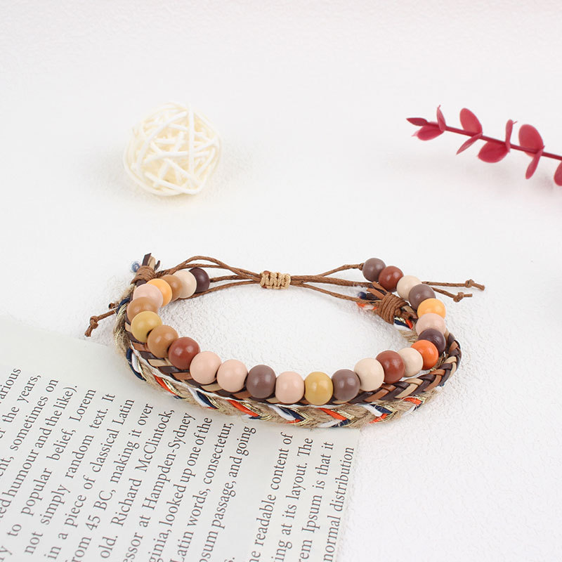 Mixed Material Bracelets, Acrylic, with Linen & PU Leather & Wax Cord, fashion jewelry, mixed colors, Sold By PC