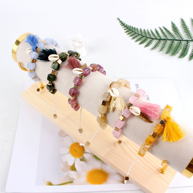 Mixed Material Bracelets, Acrylic, with Wax Cord & Shell & Copper Coated Plastic & Zinc Alloy, fashion jewelry, more colors for choice, 8mm, Length:27 cm, Sold By PC
