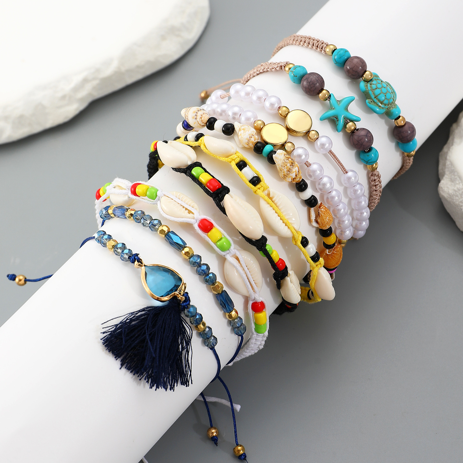 Mixed Material Bracelets, Copper Coated Plastic, with Seedbead & Shell & Zinc Alloy, gold color plated, fashion jewelry, more colors for choice, Sold By PC
