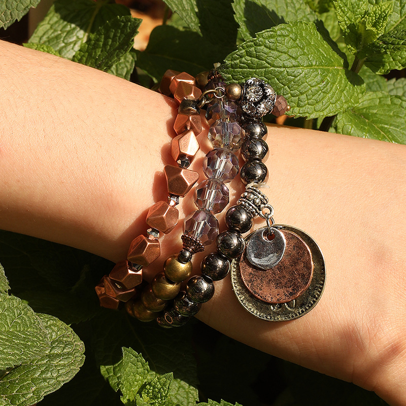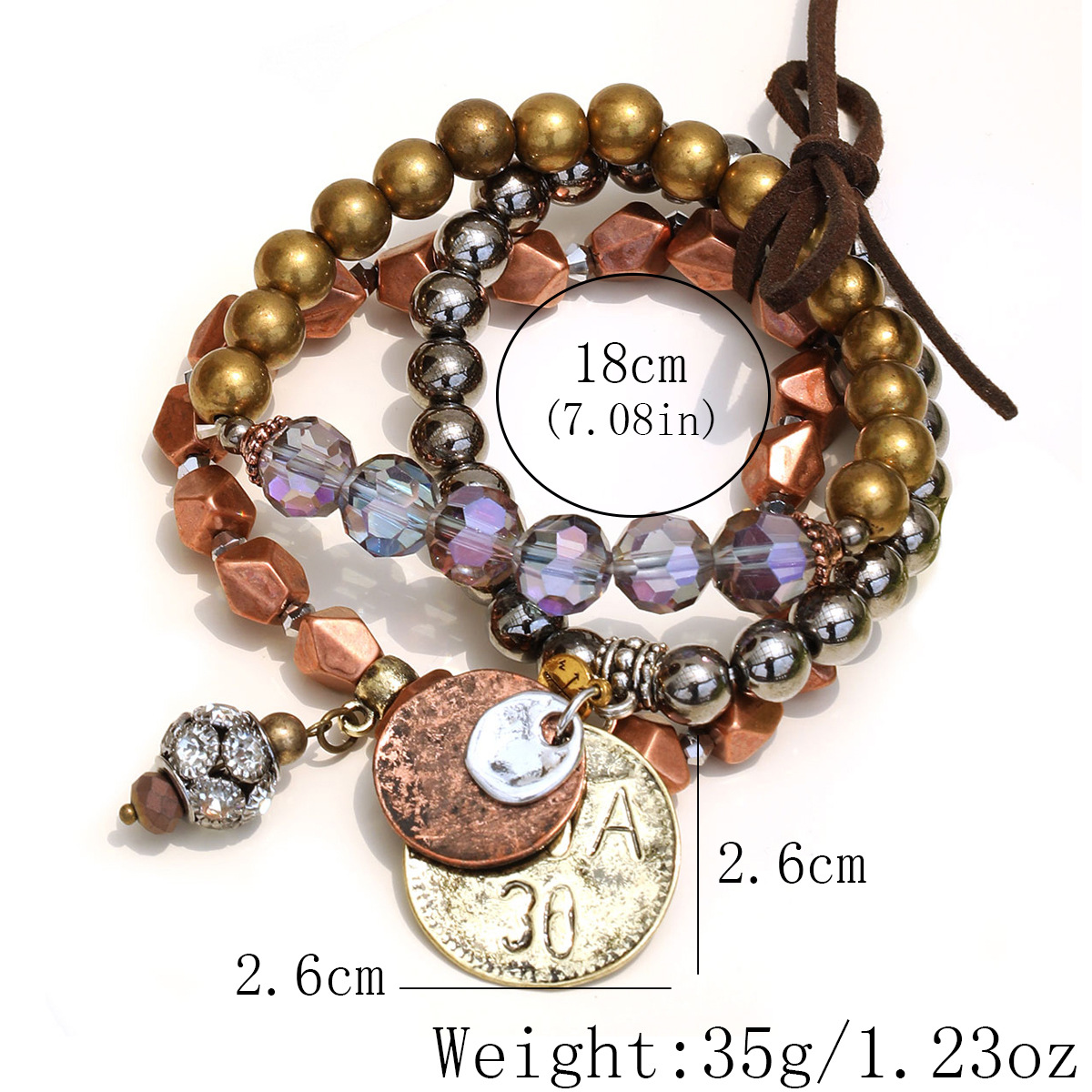 Mixed Material Bracelets, Crystal, with Rhinestone & Copper Coated Plastic & Zinc Alloy, fashion jewelry, more colors for choice, 3PCs/Set, Sold By Set