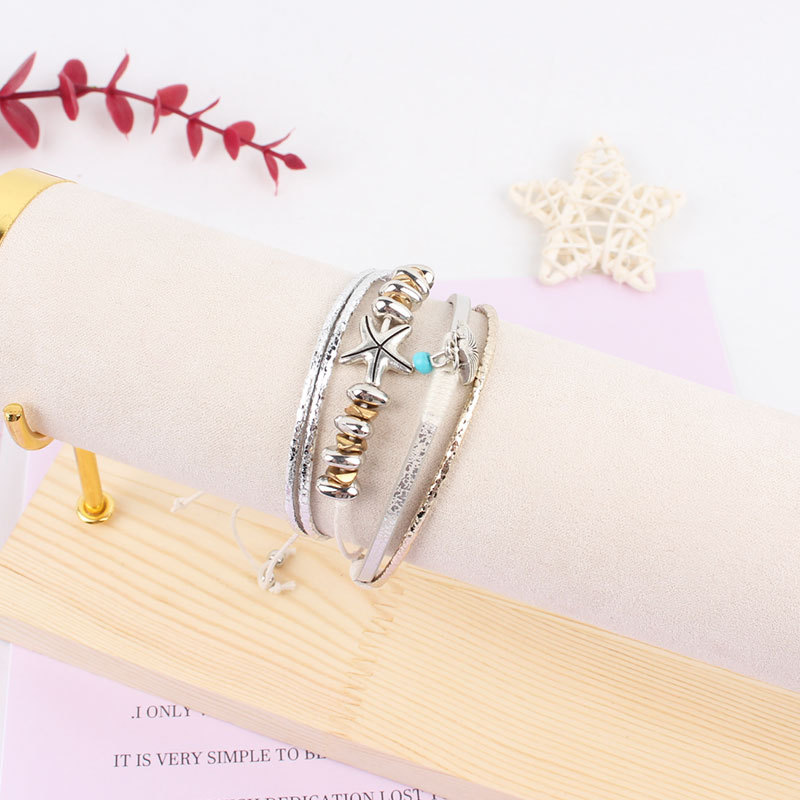 Mixed Material Bracelets, PU Leather, with Wax Cord & Copper Coated Plastic & Zinc Alloy, fashion jewelry, mixed colors, Length:27 cm, Sold By PC