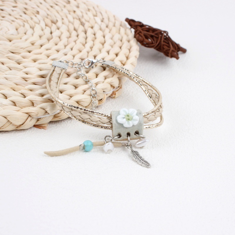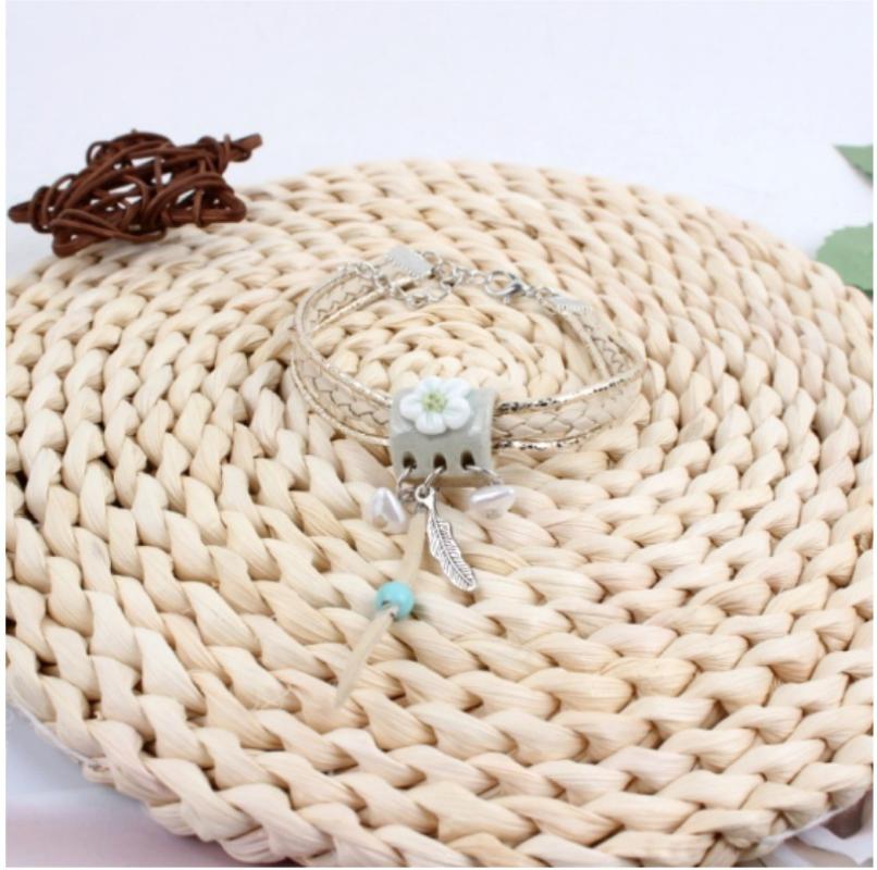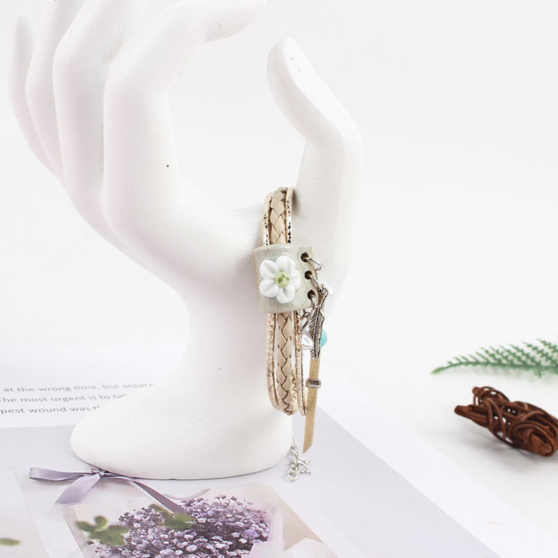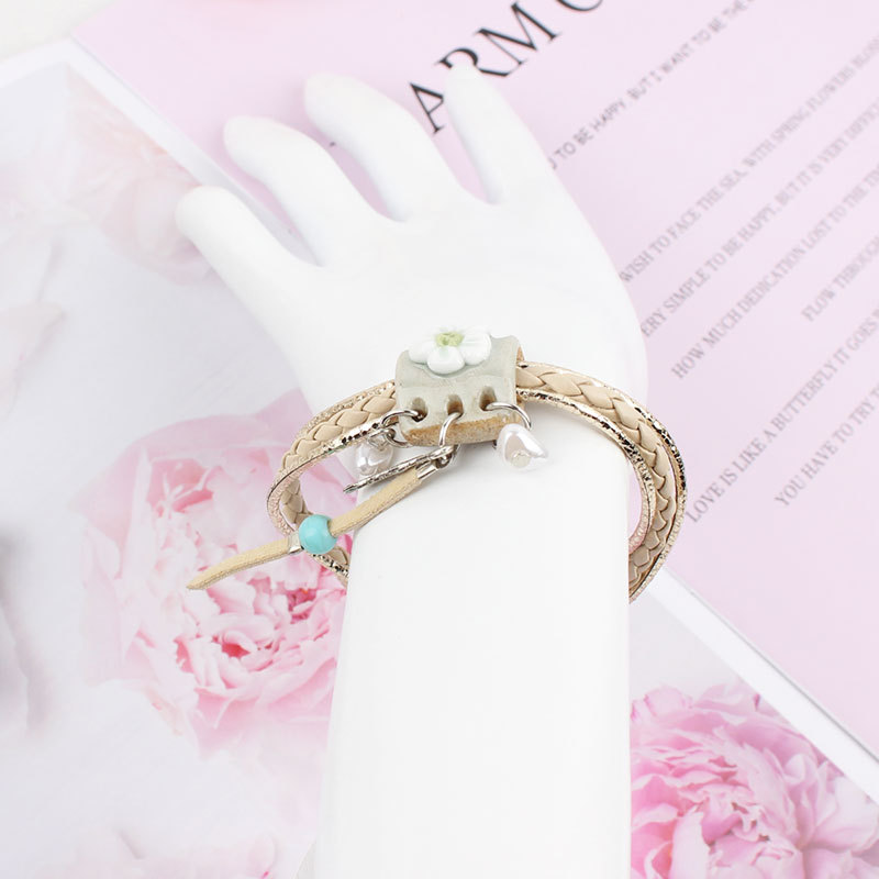 Mixed Material Bracelets, Porcelain, with PU Leather & Plastic Pearl & Zinc Alloy, fashion jewelry, mixed colors, 5mm, Length:26 cm, Sold By PC