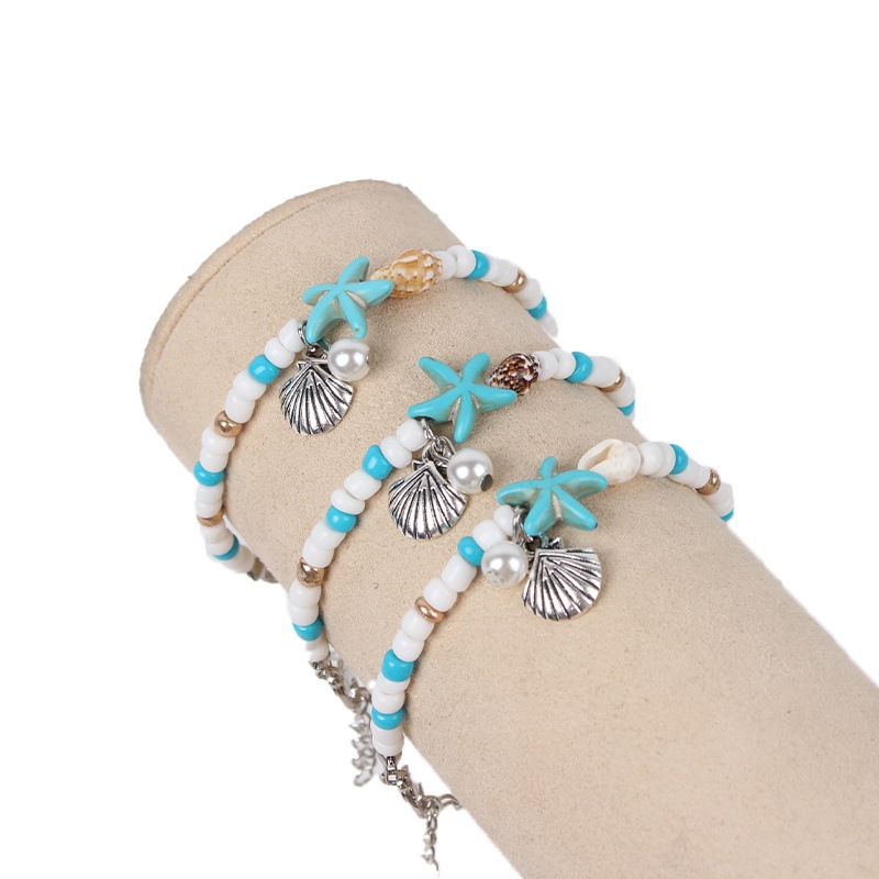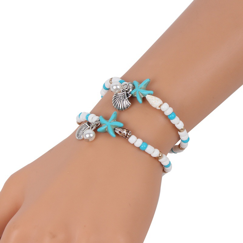 Mixed Material Bracelets, Seedbead, with Synthetic Turquoise & Trumpet Shell & Plastic Pearl & Zinc Alloy, plated, fashion jewelry, mixed colors, 225mm, Length:22.5 cm, Sold By PC