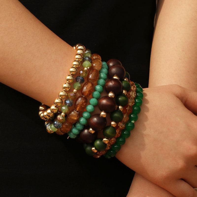 Mixed Material Bracelets, Wood, with Glass & Copper Coated Plastic, fashion jewelry, more colors for choice, 8PCs/Set, Sold By Set