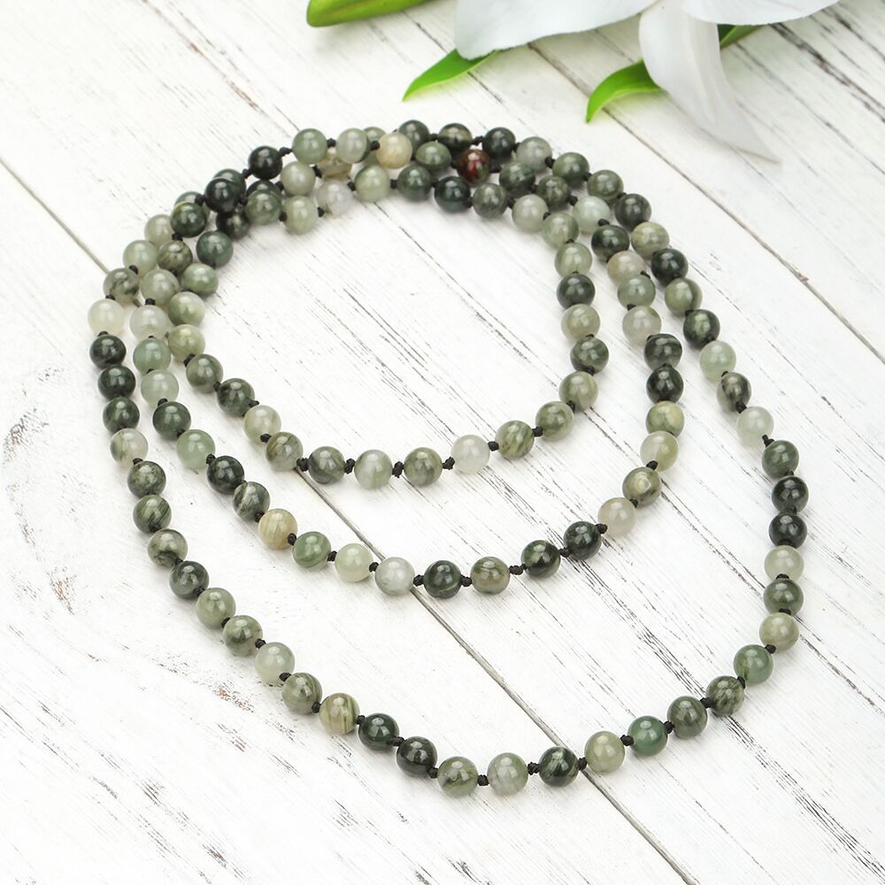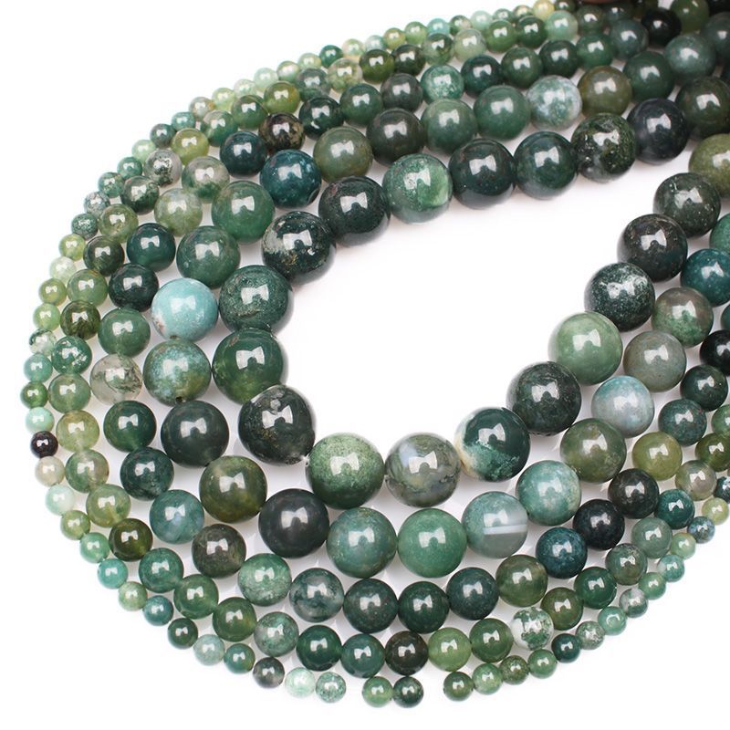 Moss Agate Necklace, Round, Unisex & different size for choice, Length:Approx 1.2 m, Sold By PC