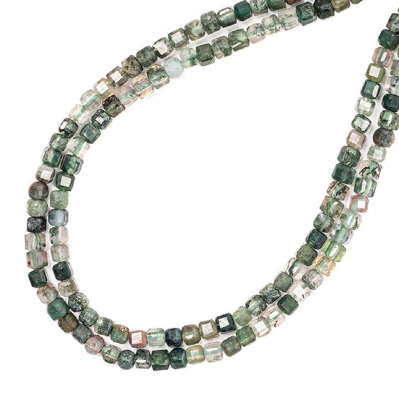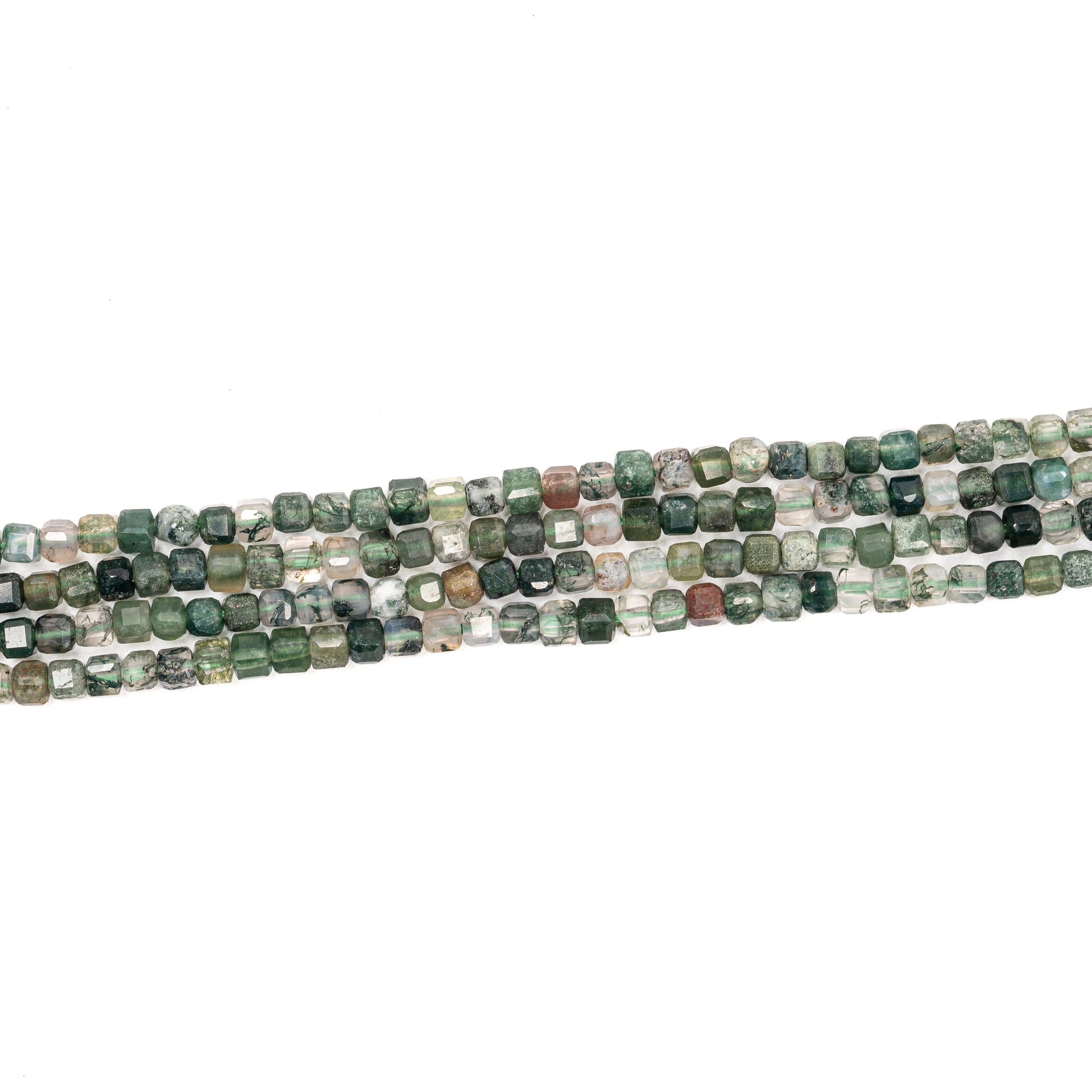 Natural Moss Agate Beads, Square, DIY, green, 2.5x2.5mm, Length:Approx 38 , Sold By Strand