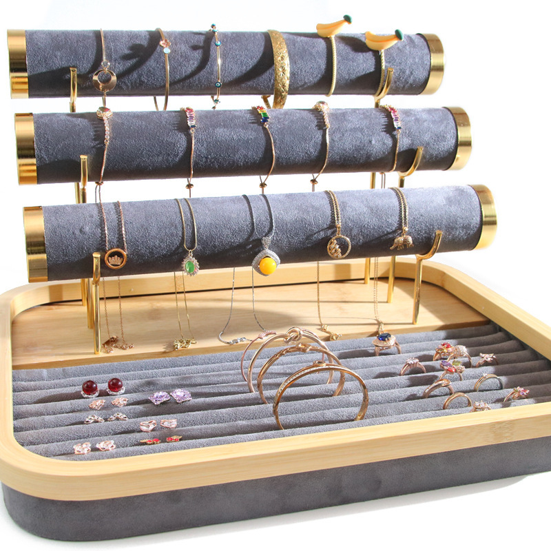 Multi Purpose Jewelry Display, Velvet, with Wood, fashion jewelry, more colors for choice, 405x335x250mm, Sold By Set