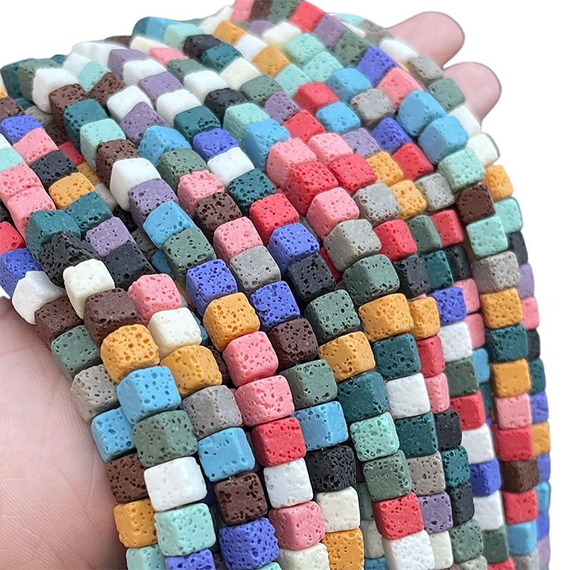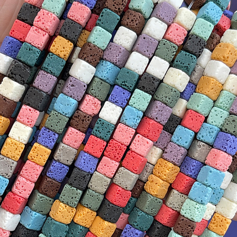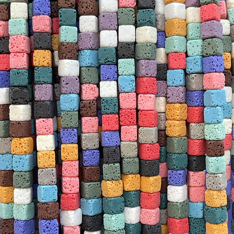 Multicolor Lava Beads, Cube 8mm Inch, Approx
