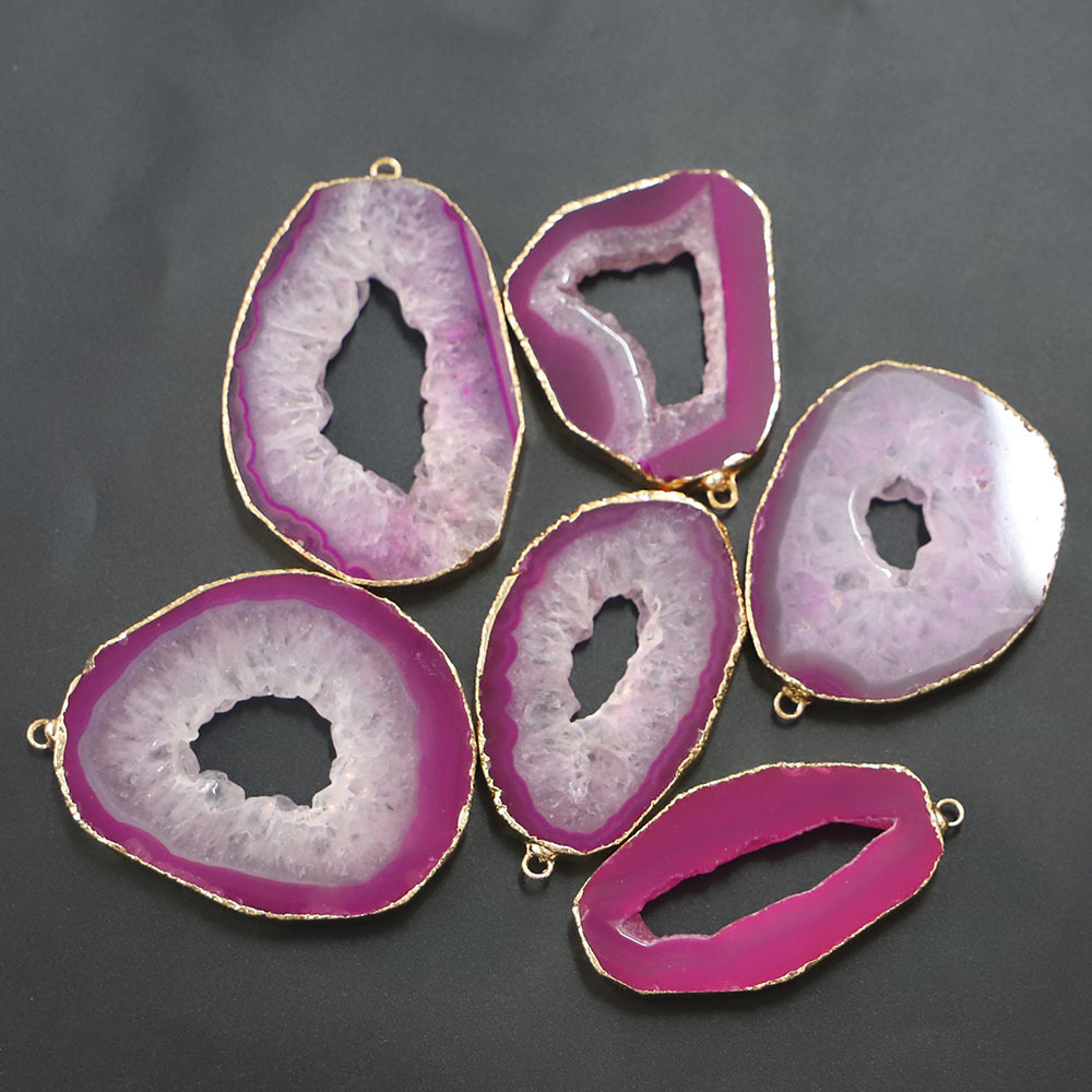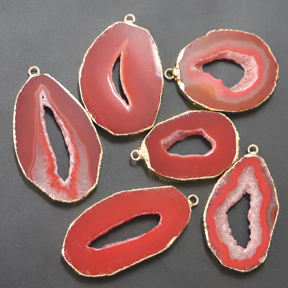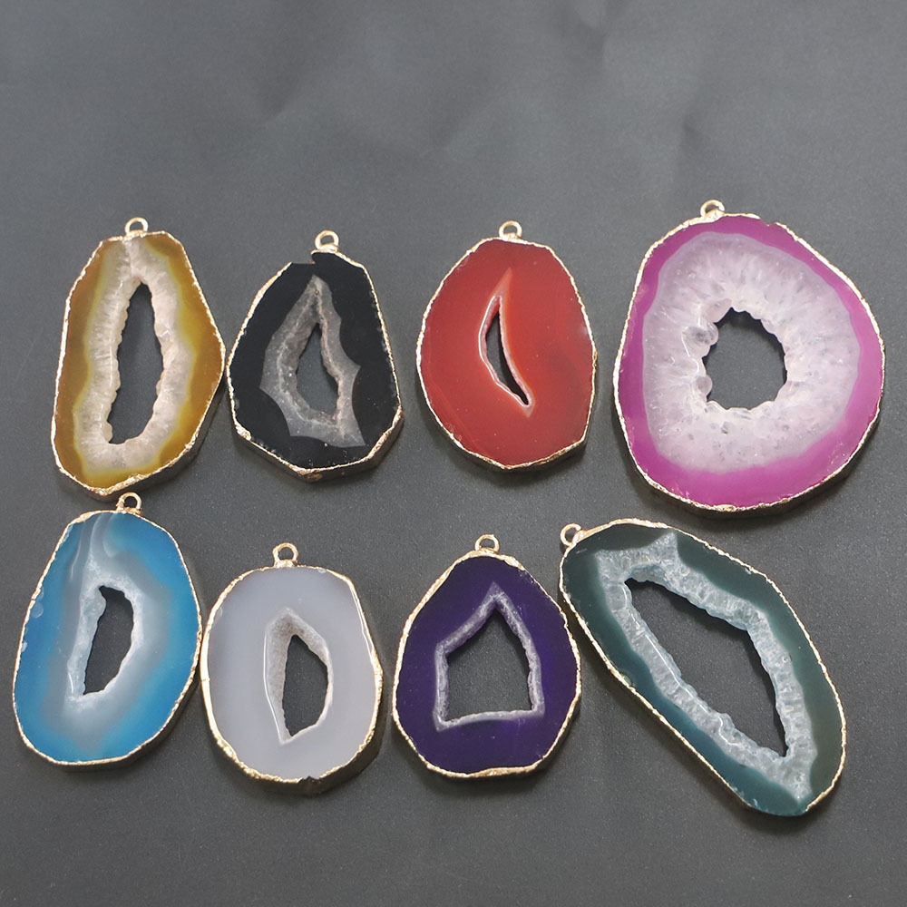 Natural Agate Druzy Pendant, Brass, with Agate, gold color plated, nickel, lead & cadmium free