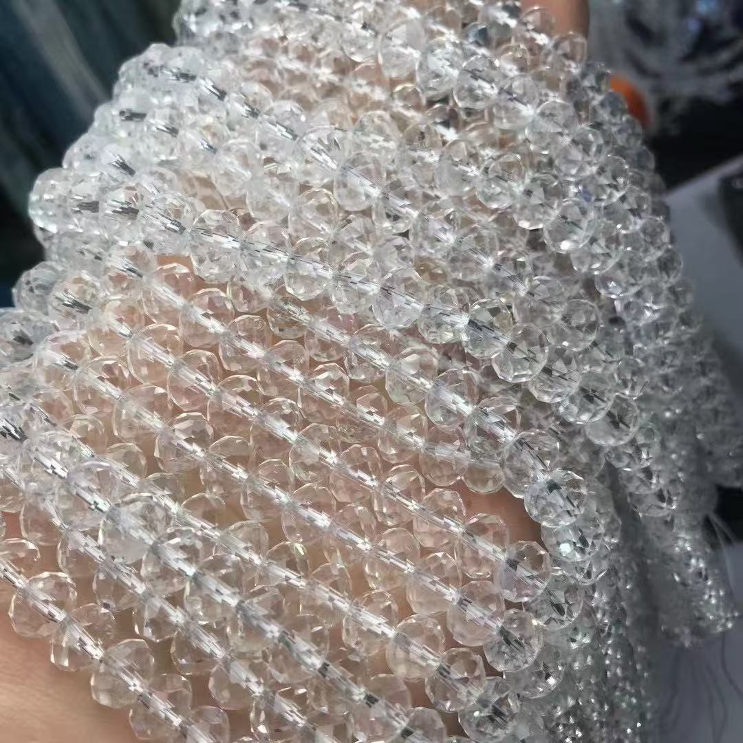 Natural Clear Quartz Beads, Rondelle, faceted Inch, Approx