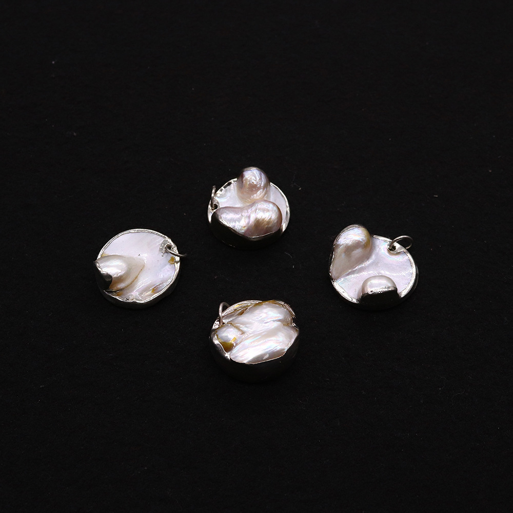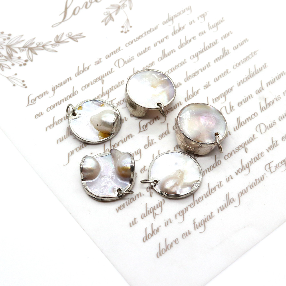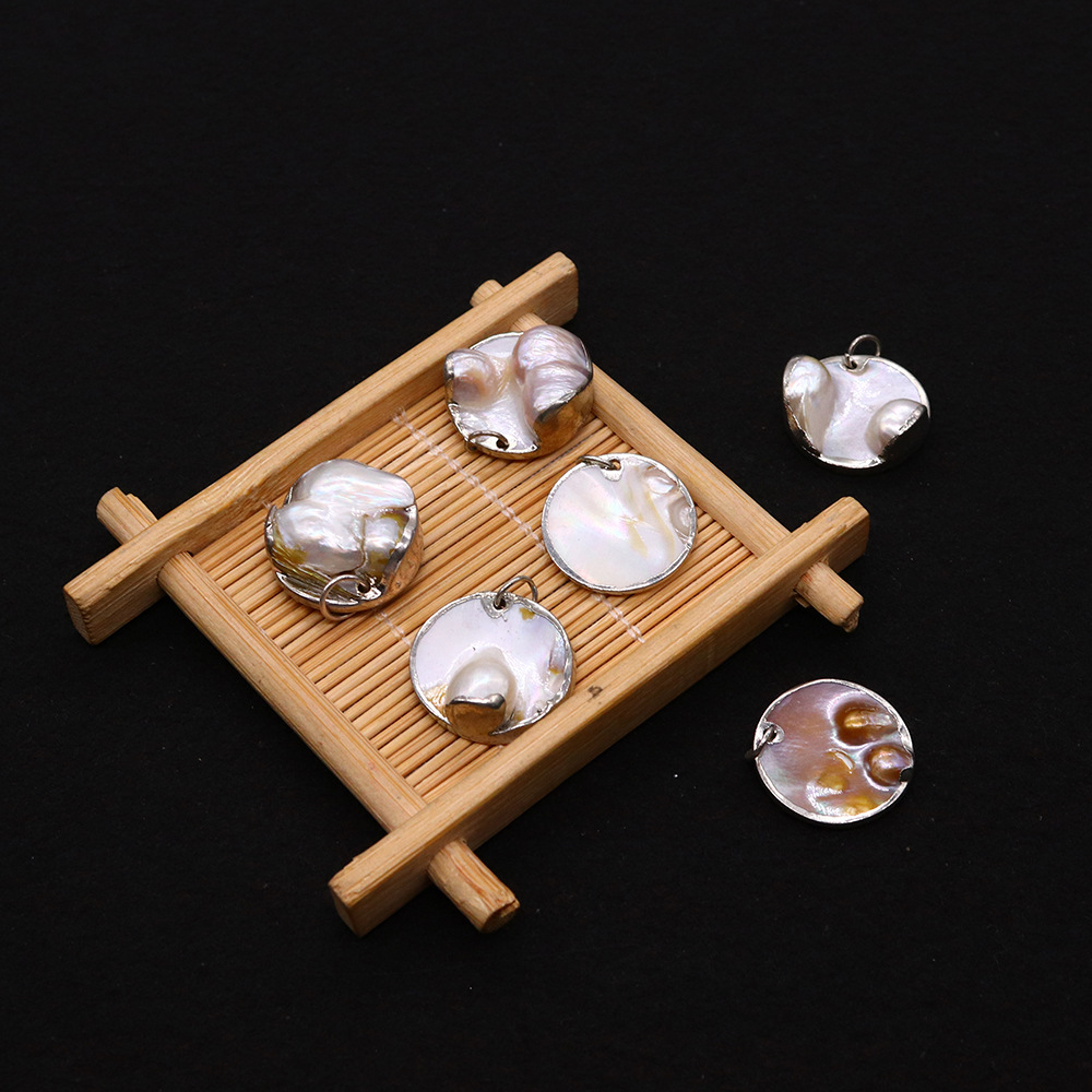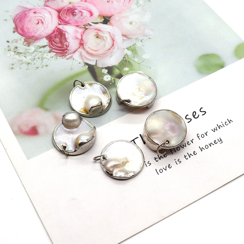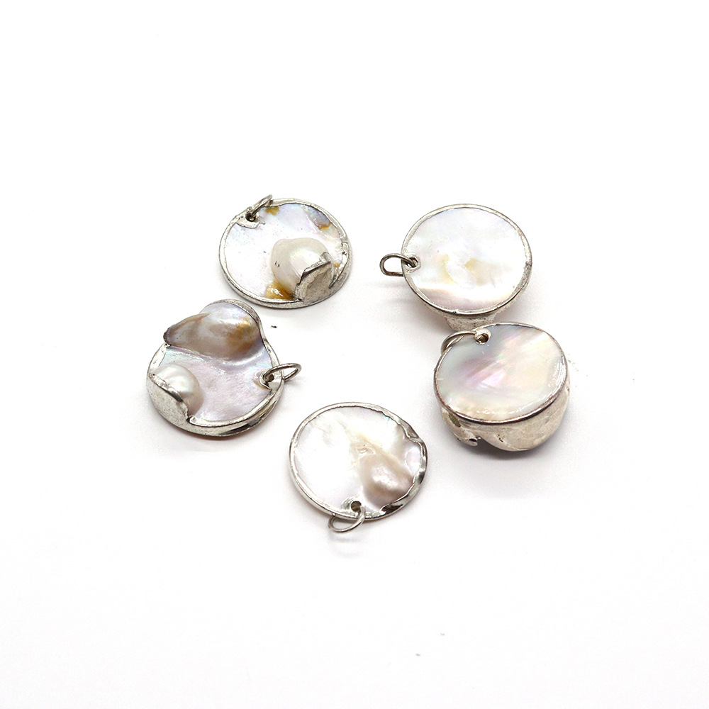 Natural Freshwater Shell Pendants, Flat Round Approx 1.5mm
