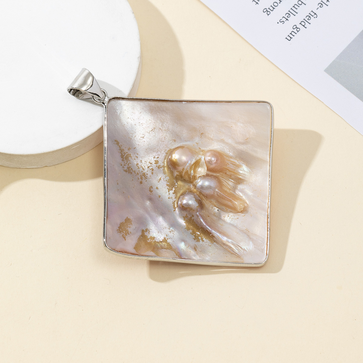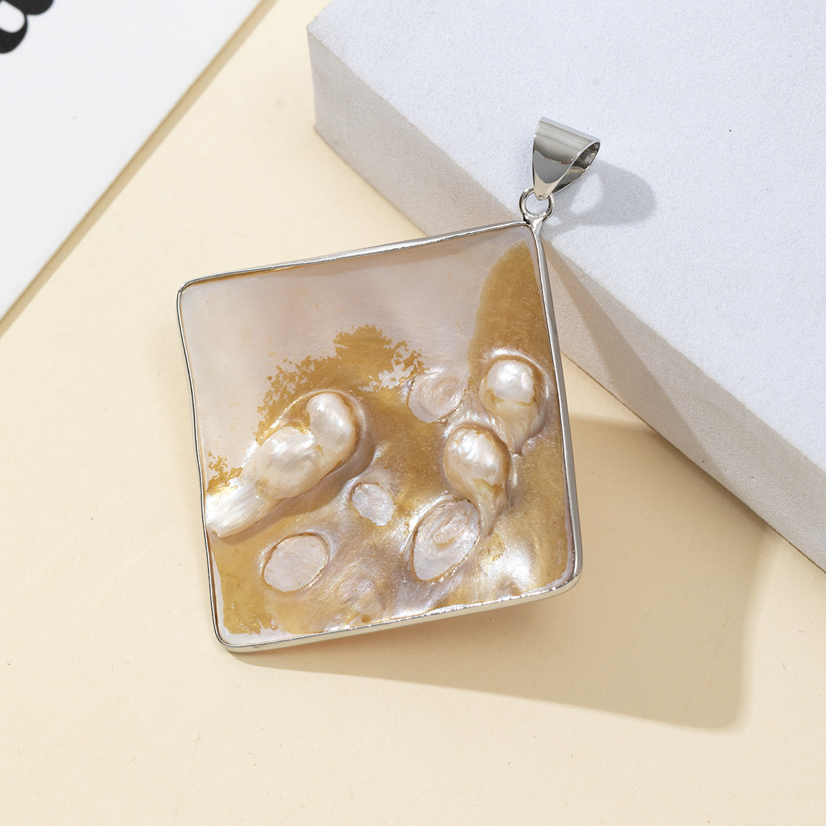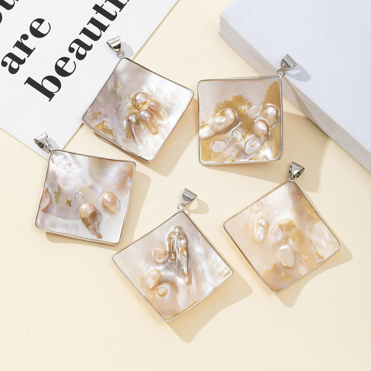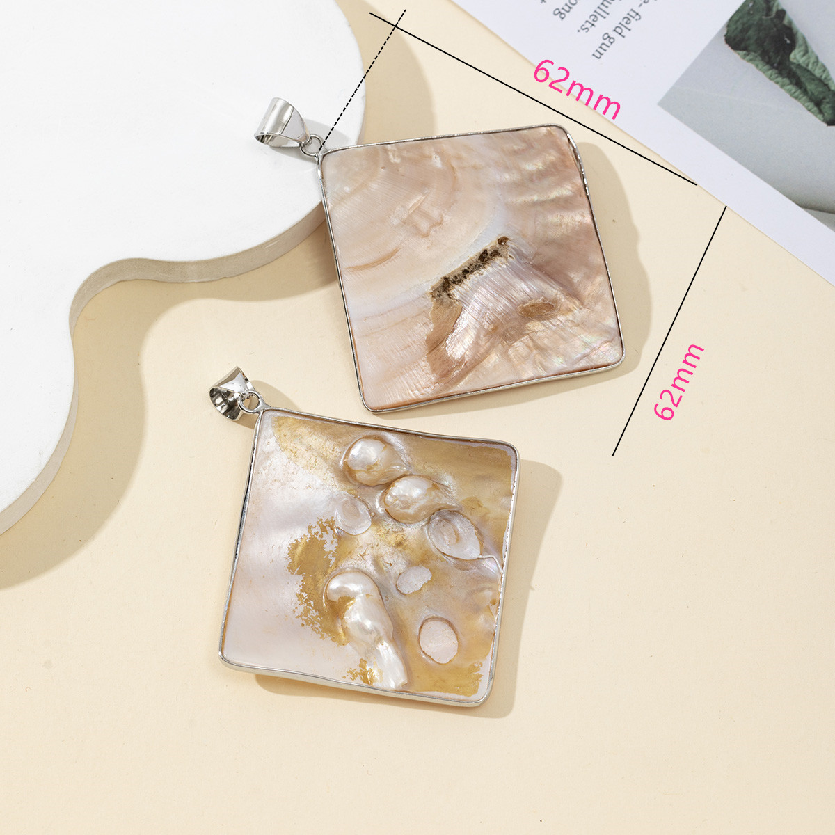 Natural Freshwater Shell Pendants, with Freshwater Pearl, Rhombus, DIY, 62x62mm, Sold By PC