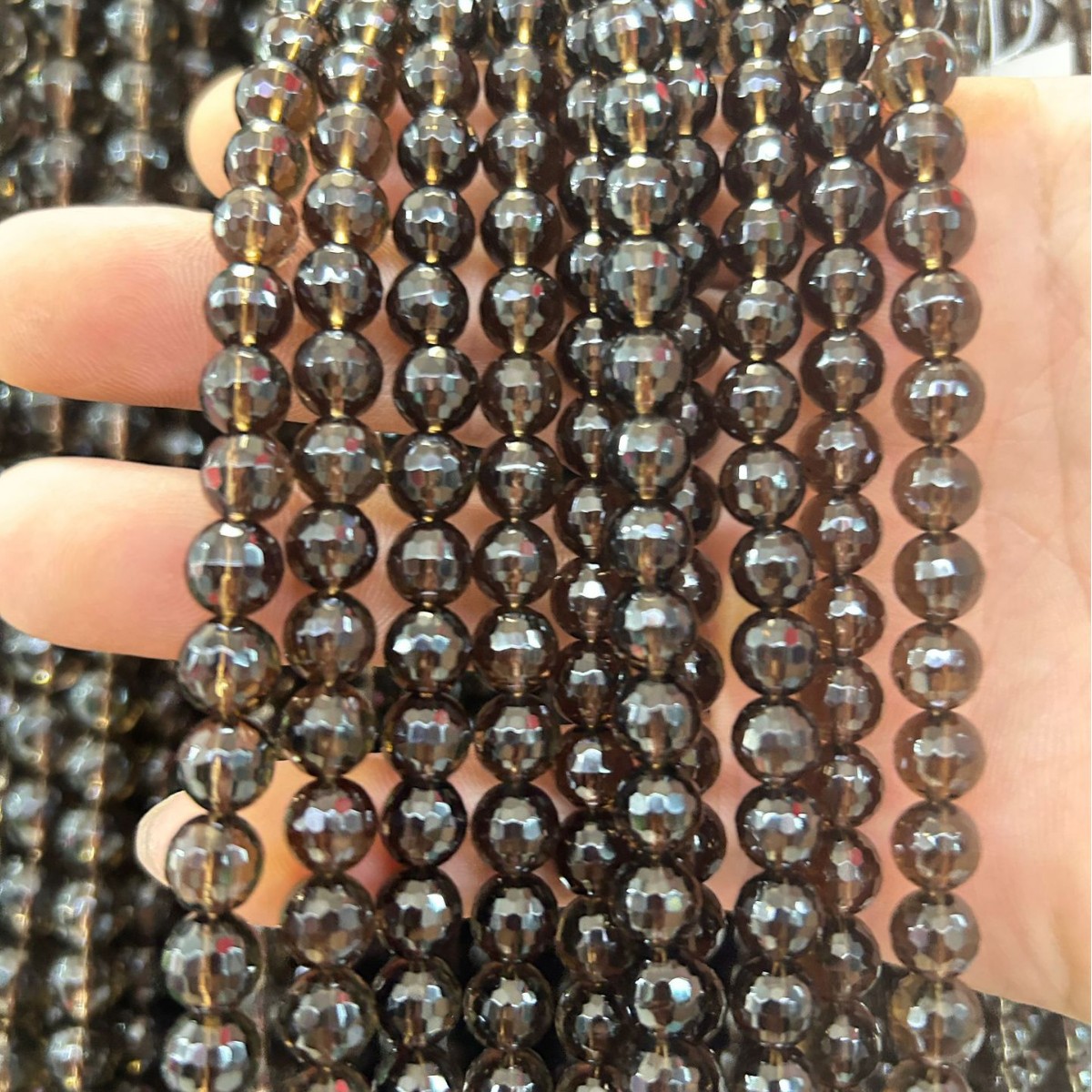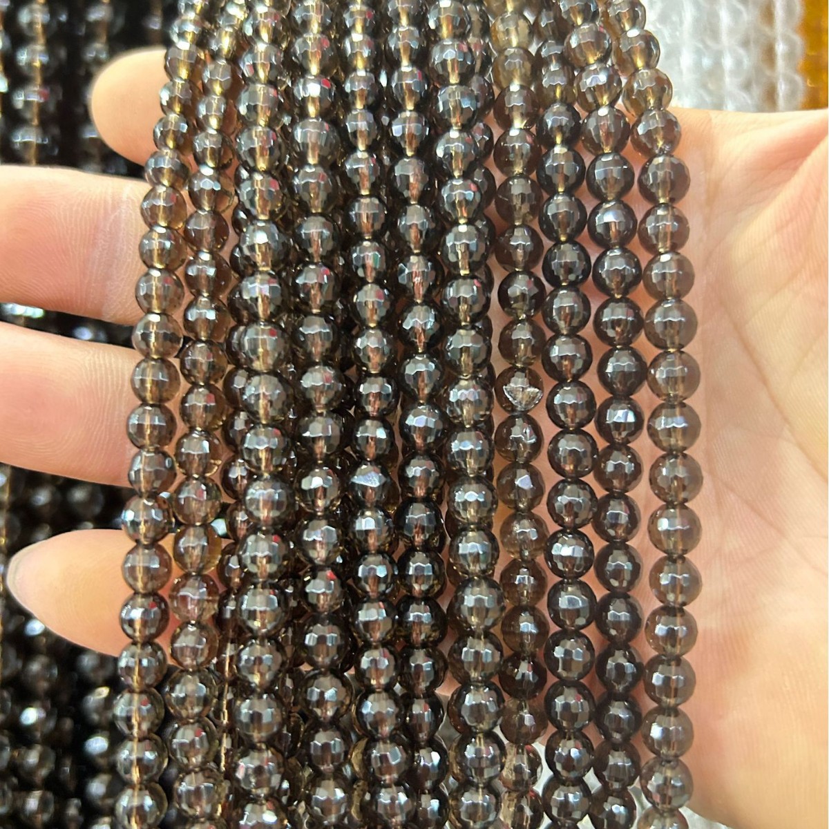 Natural Smoky Quartz Beads, Round, faceted, 6mm Approx 1.5mm .5 Inch