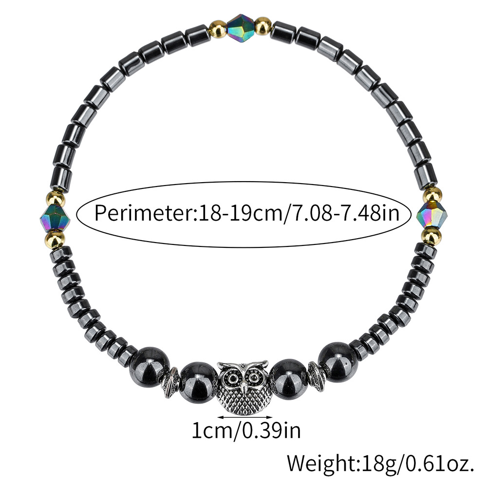 Synthetic Turquoise Anklet, with Glass Seed Beads & Zinc Alloy, with 2inch extender chain, Owl, antique silver color plated, Double Layer & for woman Approx 9 Inch