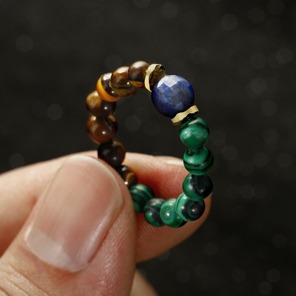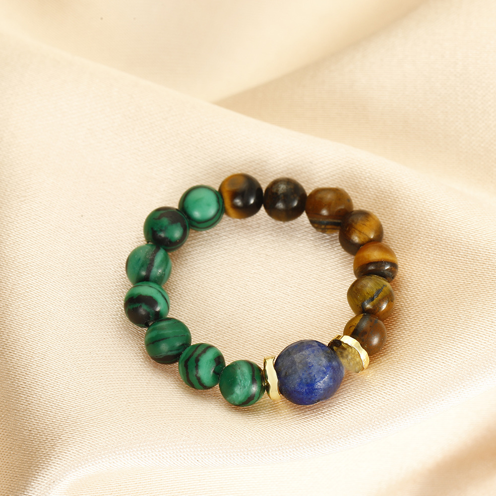 Gemstone Finger Ring, Natural Stone, with Elastic Thread, handmade, fashion jewelry & elastic & Unisex, multi-colored, US Ring Size:7, Sold By PC