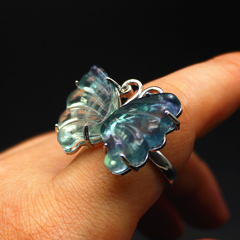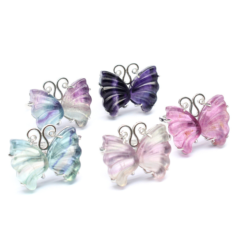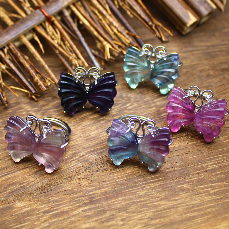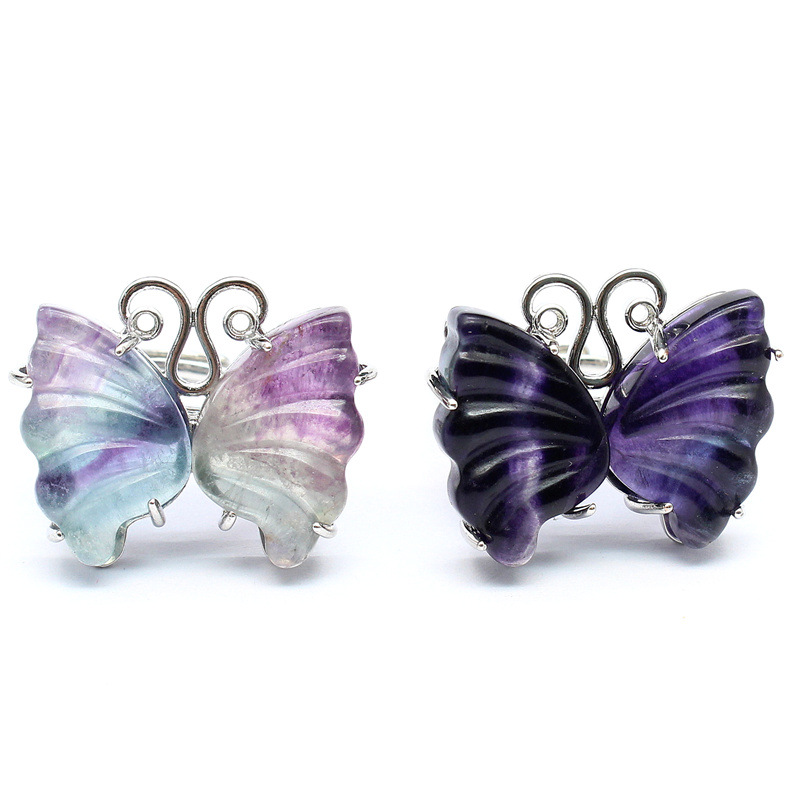 Gemstone Zinc Alloy Finger Ring, Natural Stone, with Zinc Alloy, Butterfly, silver color plated, different materials for choice & for woman, more colors for choice, inner diameter:17~20mm, Sold By PC