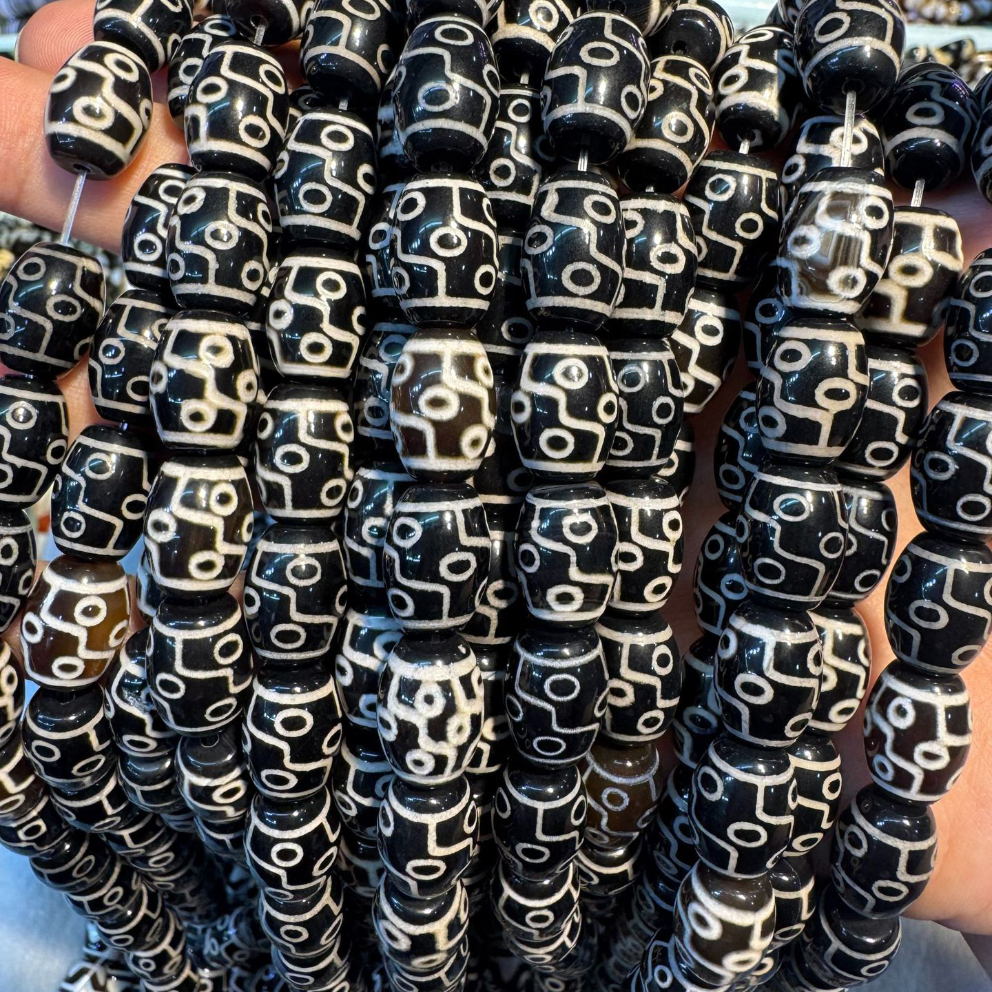 Natural Tibetan Agate Dzi Beads, Drum, DIY