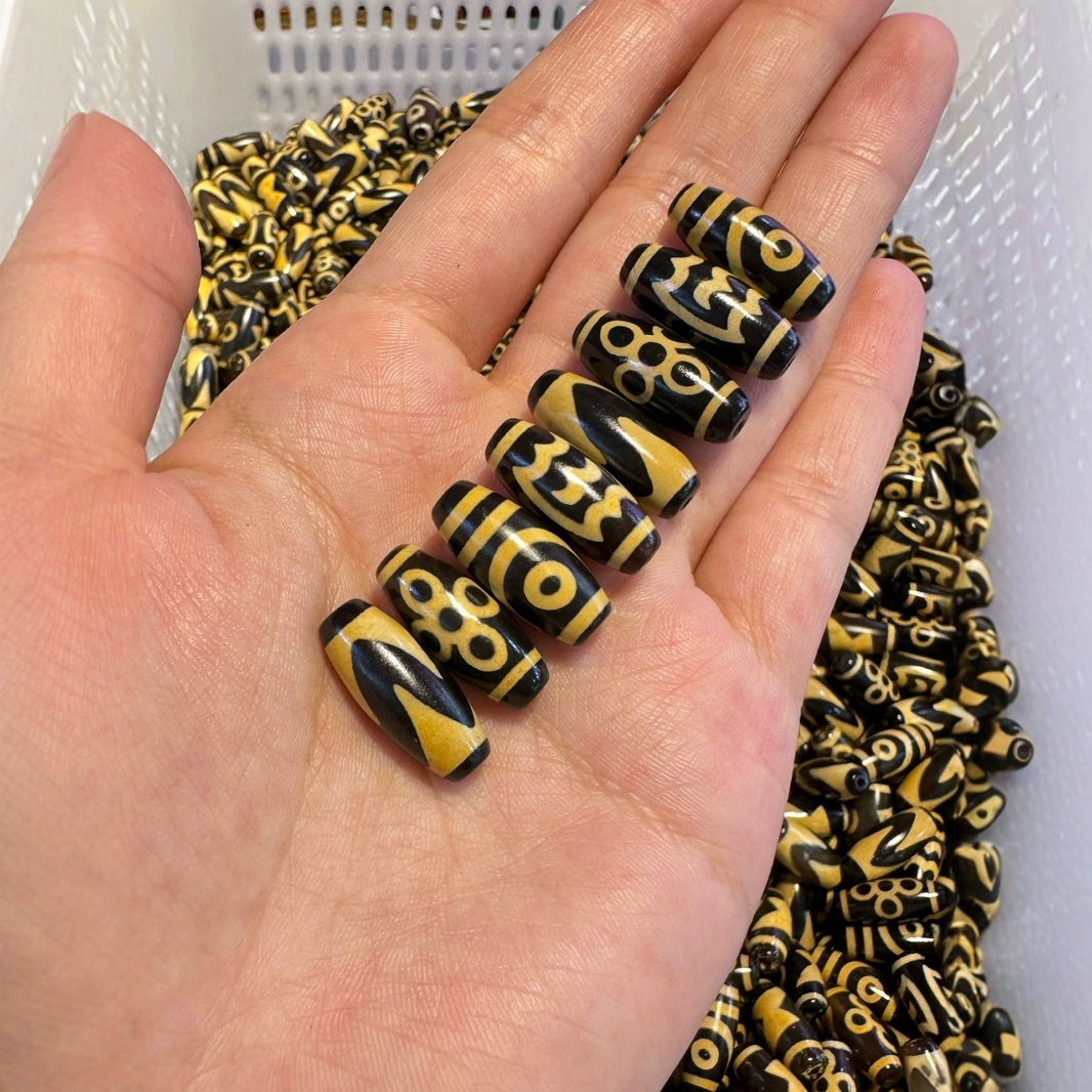 Natural Tibetan Agate Dzi Beads, Drum, DIY