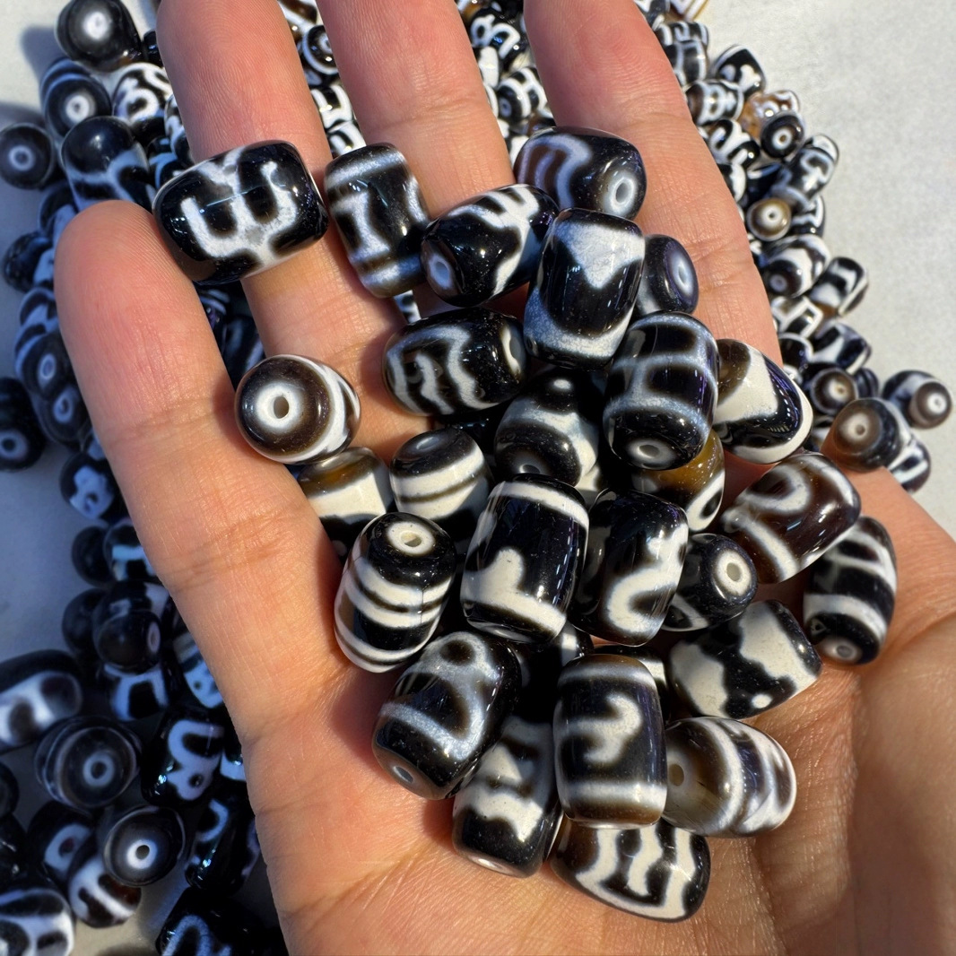 Natural Tibetan Agate Dzi Beads, Drum, DIY