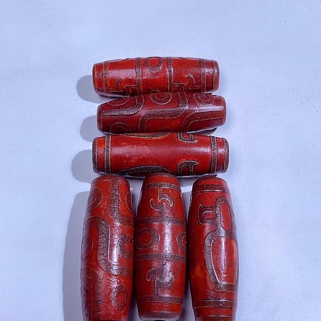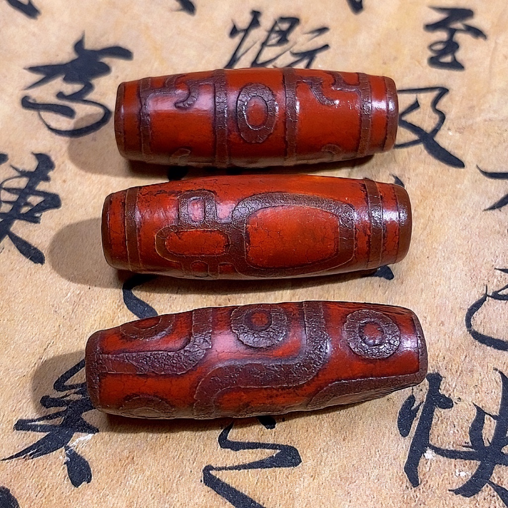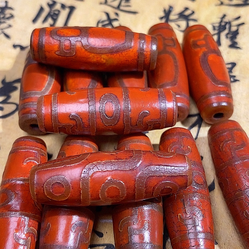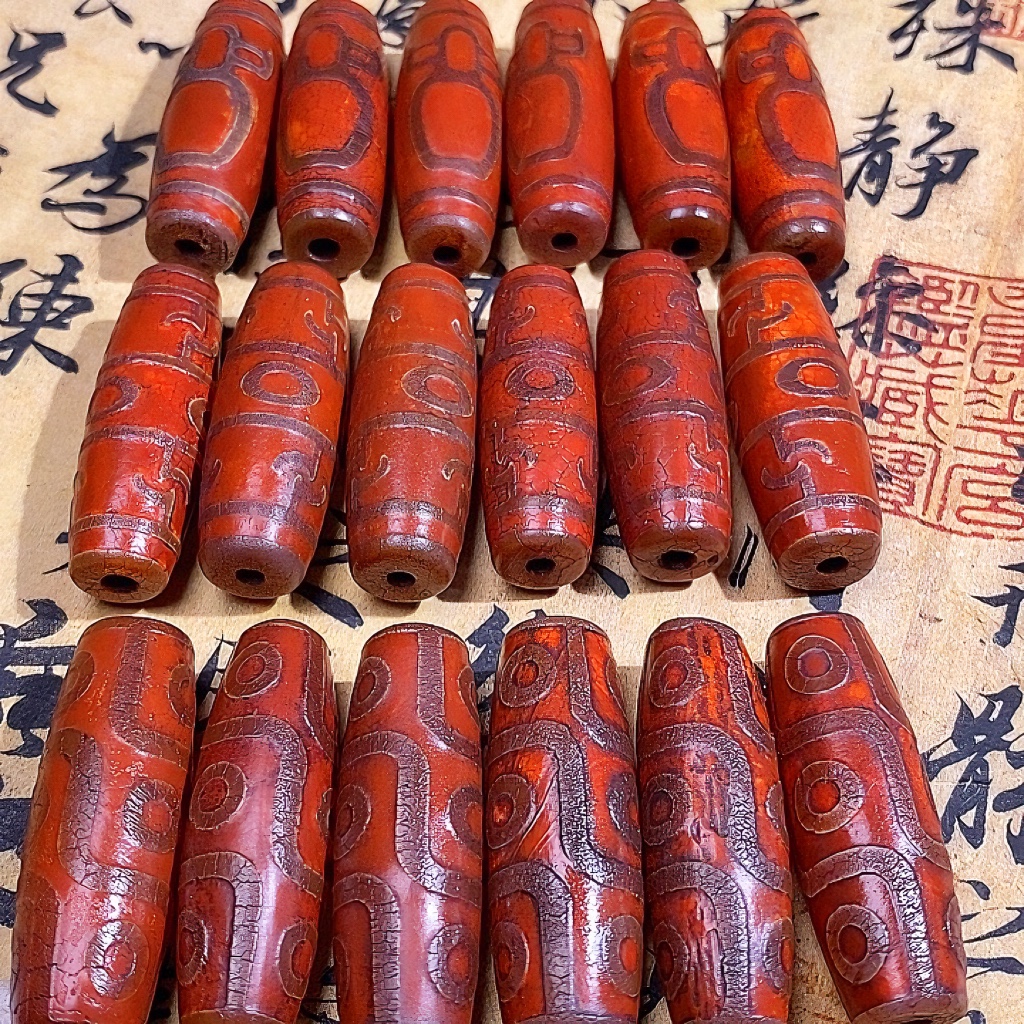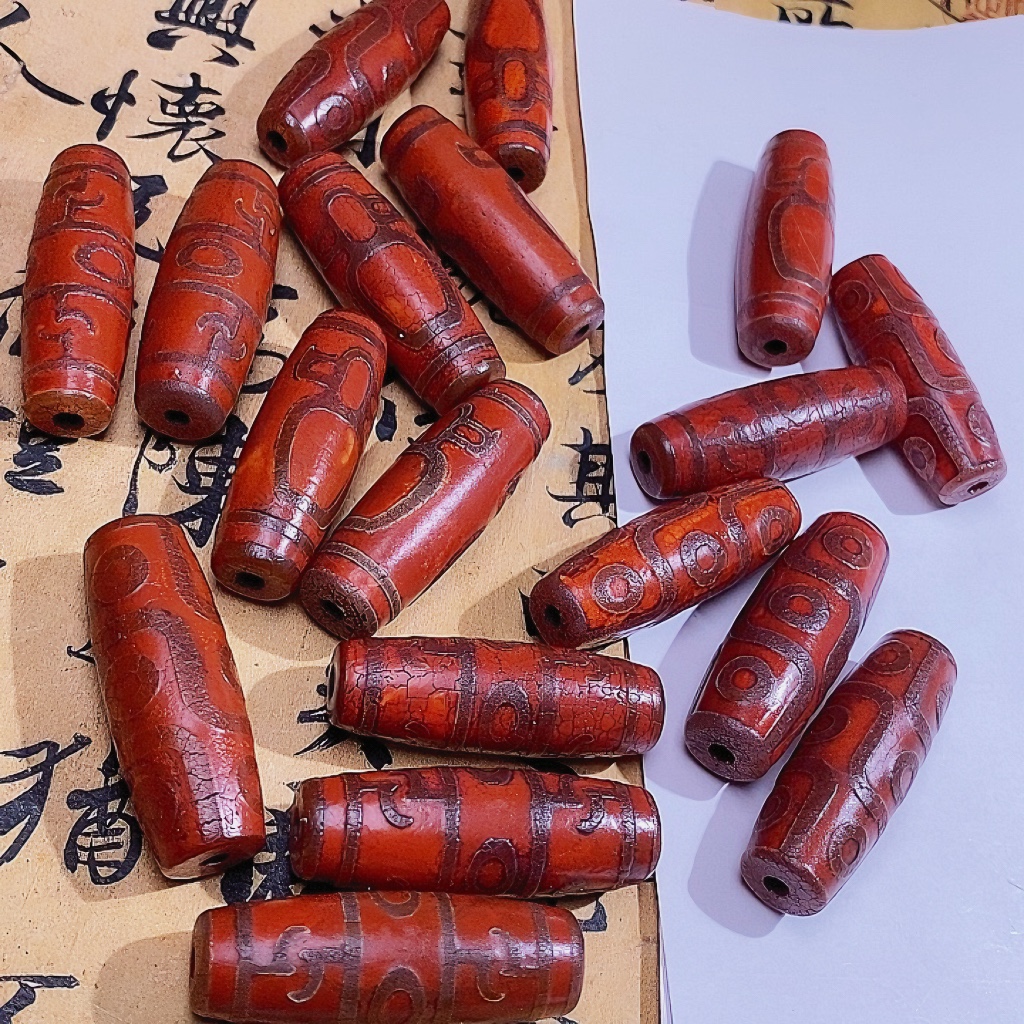 Natural Tibetan Agate Dzi Beads, DIY, red, 15x40mm, 2PCs/Bag, Sold By Bag