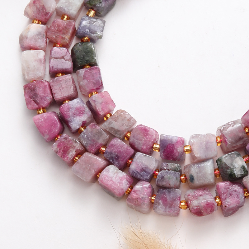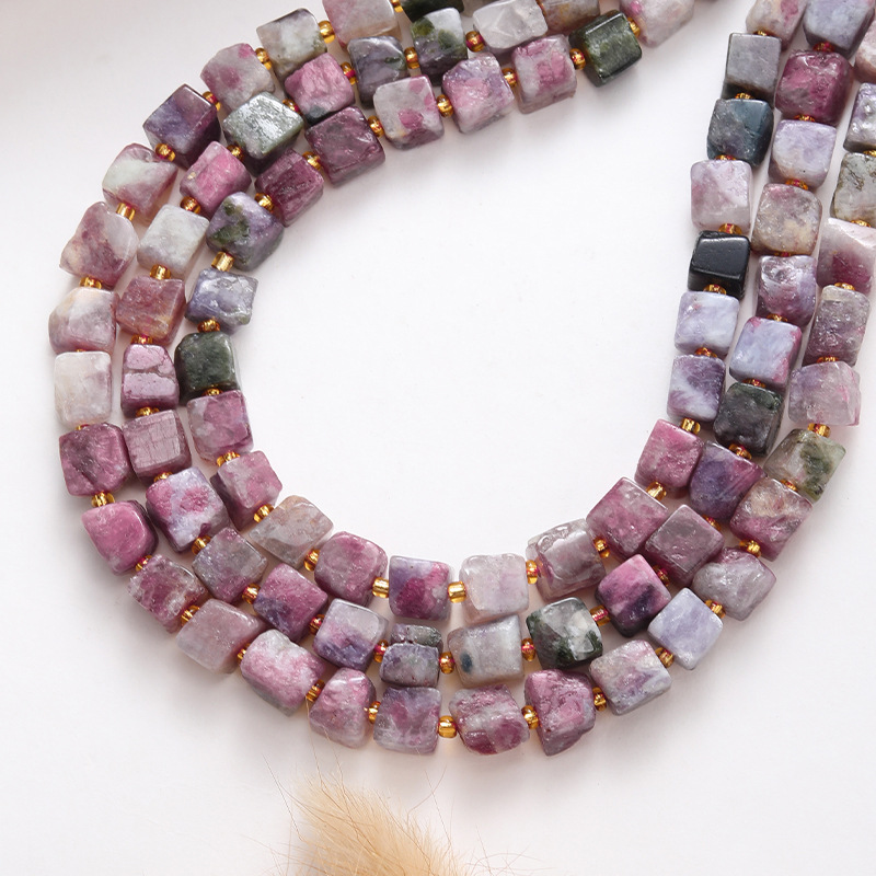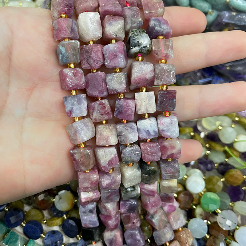 Natural Tourmaline Beads, with Seedbead, Square, DIY, mixed colors, 8x8mm, Length:38 cm, Sold By Strand